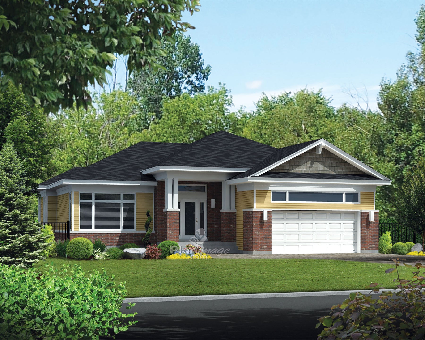 Avec son joli porche, son revêtement de briques, de bois et de bardeaux de cèdres, cette élégante demeure de plain-pied affiche un look artisanal. Elle mesure 50 pieds 5 pouces de largeur sur 55 pieds de profondeur et offre une surface habitable de 1 637 pieds carrés. Le garage occupe une surface de 462 pieds carrés et peut loger deux voitures.