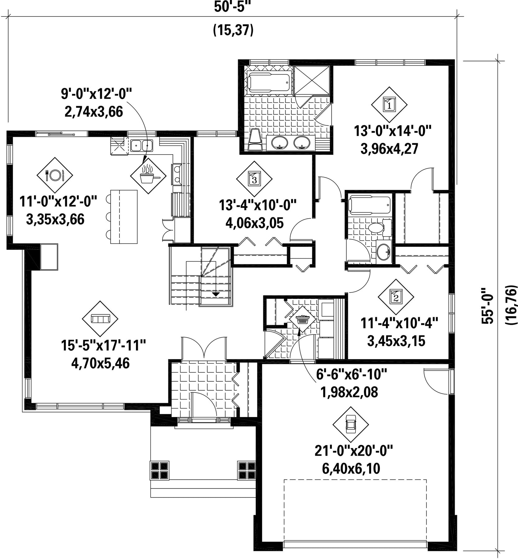 | Façade | 50 pi 5 po | Surface habitable totale | 1637 pi² |