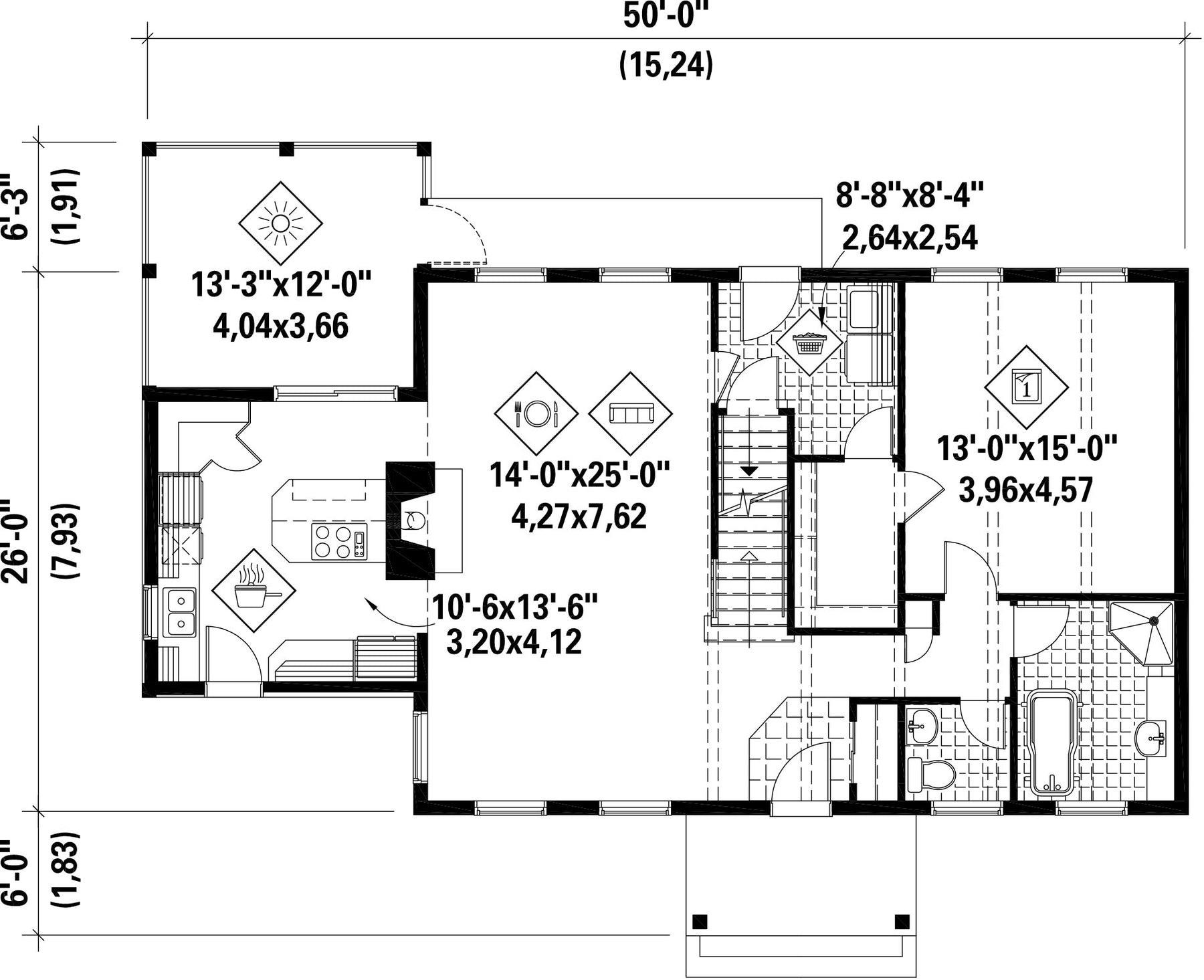Profondeur 26 piNombre de salles de bain 2