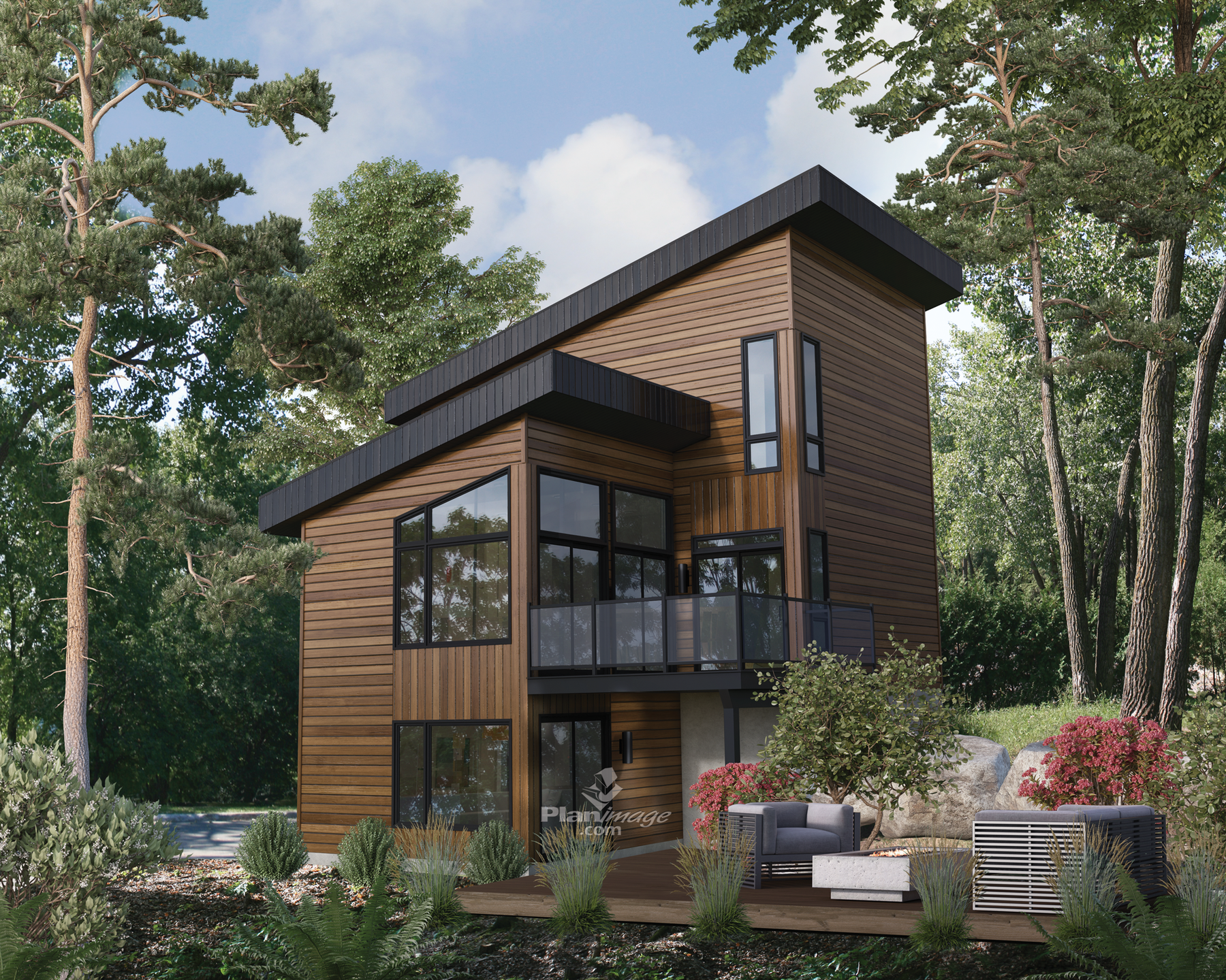 Conçu pour le farniente, ce chalet offre une vue spectaculaire de la nature grâce à son balcon accessible par une porte-fenêtre triple et sa généreuse fenestration. Il mesure 28 pieds de largeur sur 44 pieds de profondeur et offre une surface habitable de 1 664 pieds carrés.