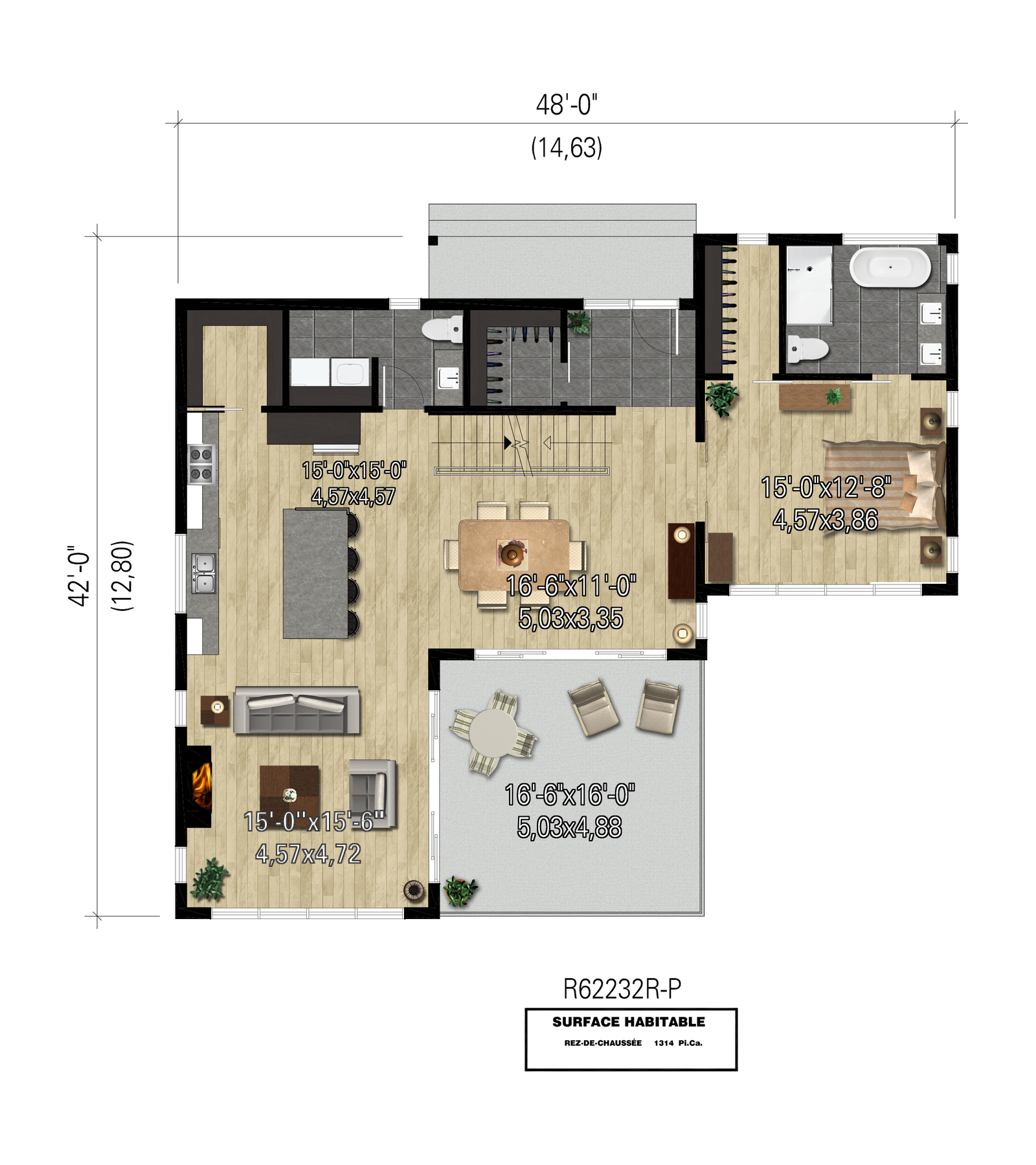| Surface rez-de-chaussée | 1314 pi² | Finition extérieure | Bois |