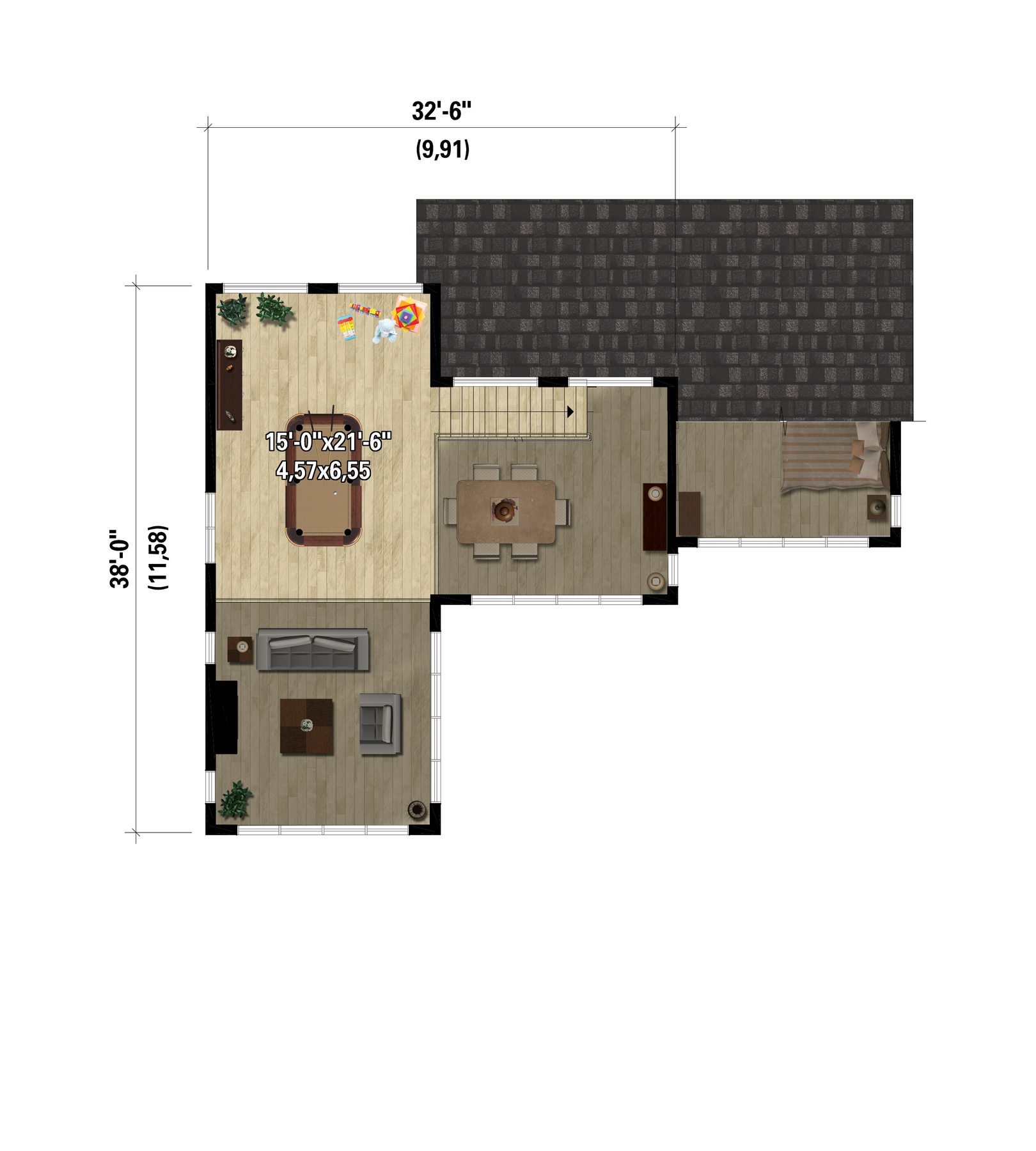 | Surface étage | 393 pi² | Type de cuisine | Forme en L + Salle à manger + Îlot |