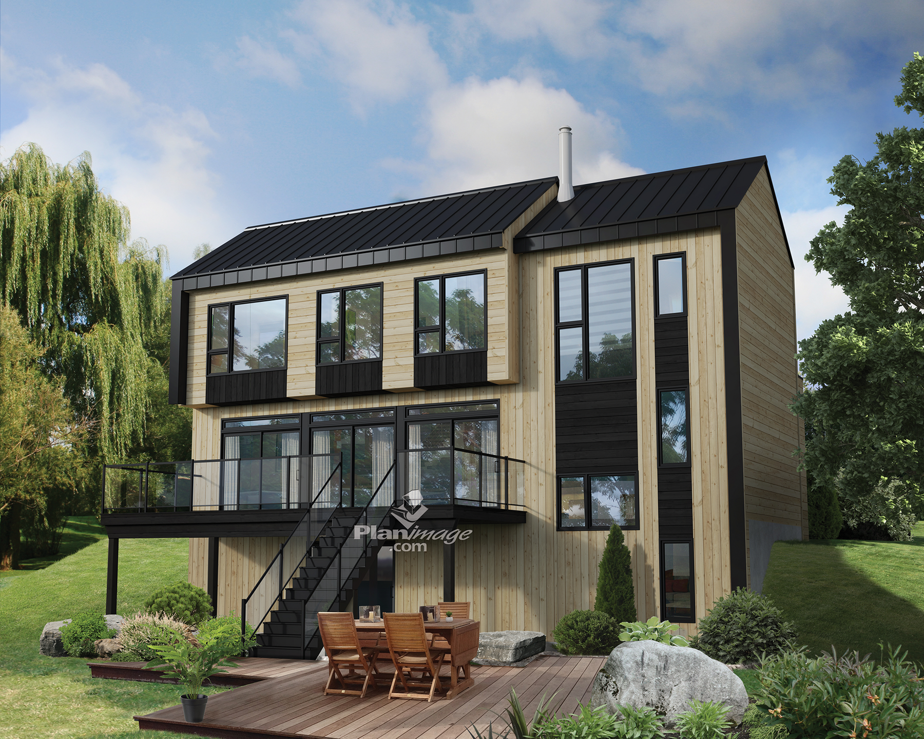 Surface rez-de-chaussée 736 pi² Finition extérieure Aluminium + Bois