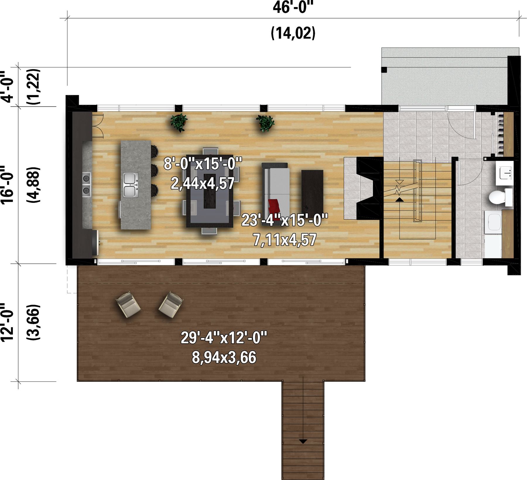 Façade 46 pi Surface habitable totale 2081 pi²