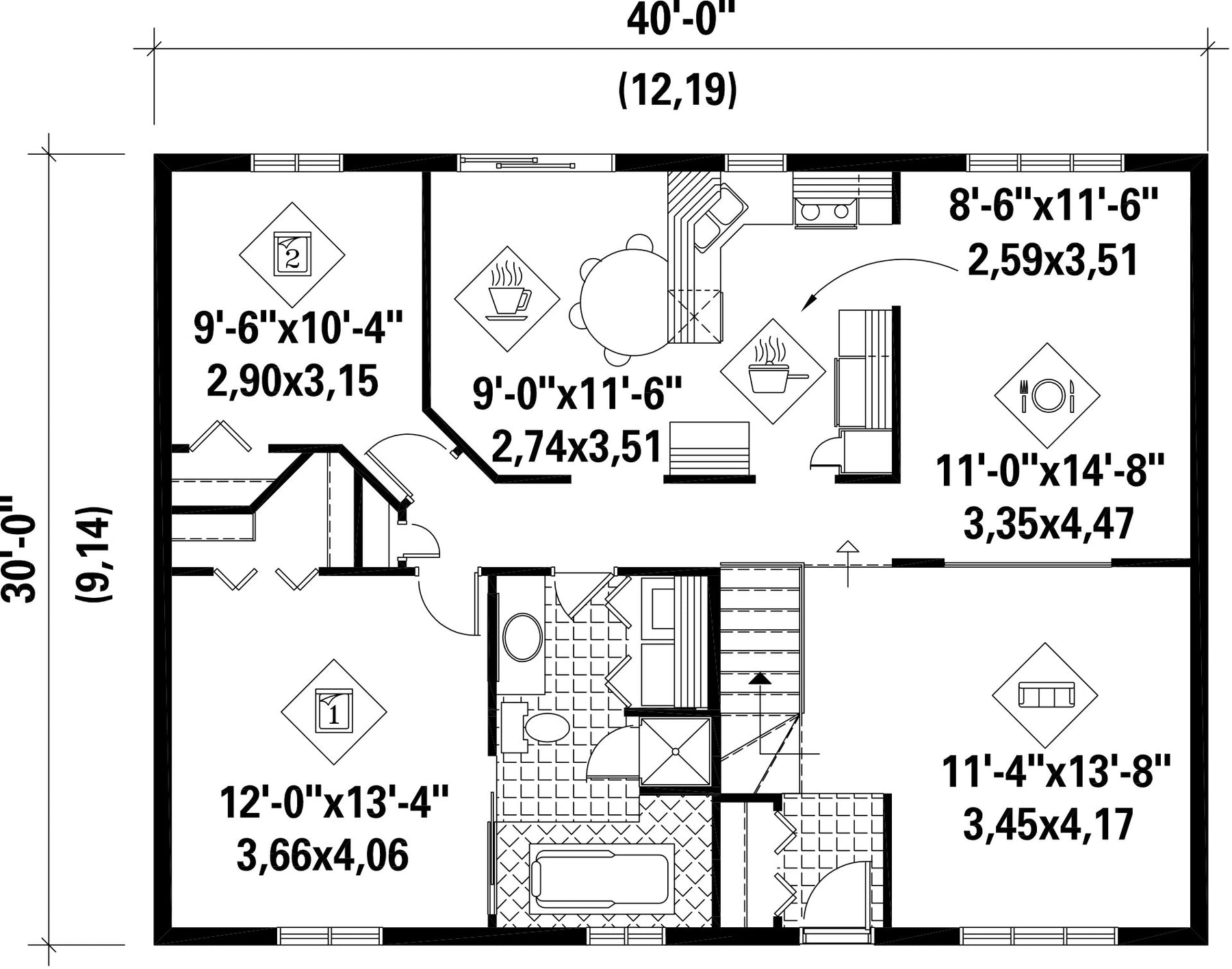 | Façade | 40 pi | Surface habitable totale | 1200 pi² |