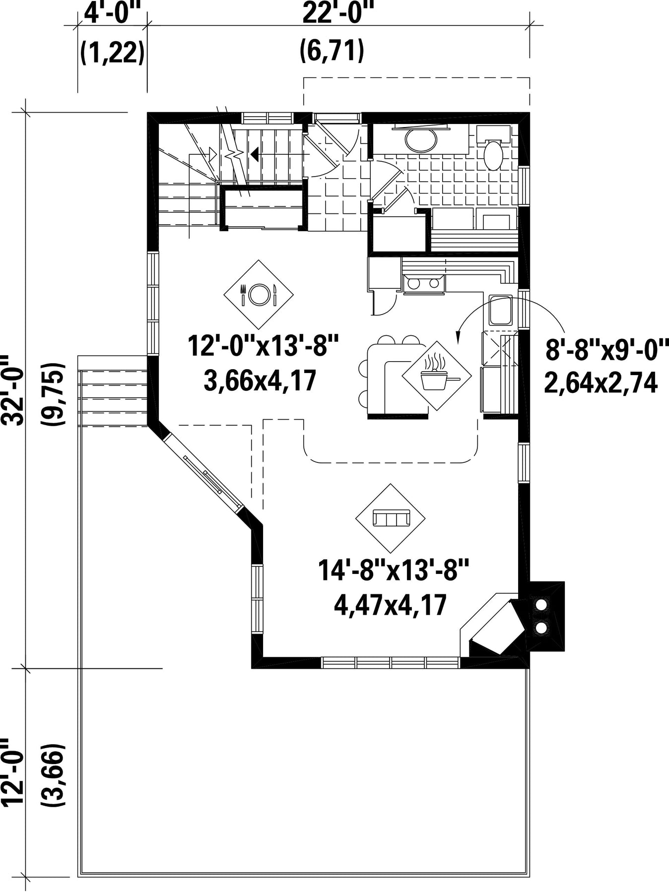 | Façade | 22 pi | Surface habitable totale | 1080 pi² |