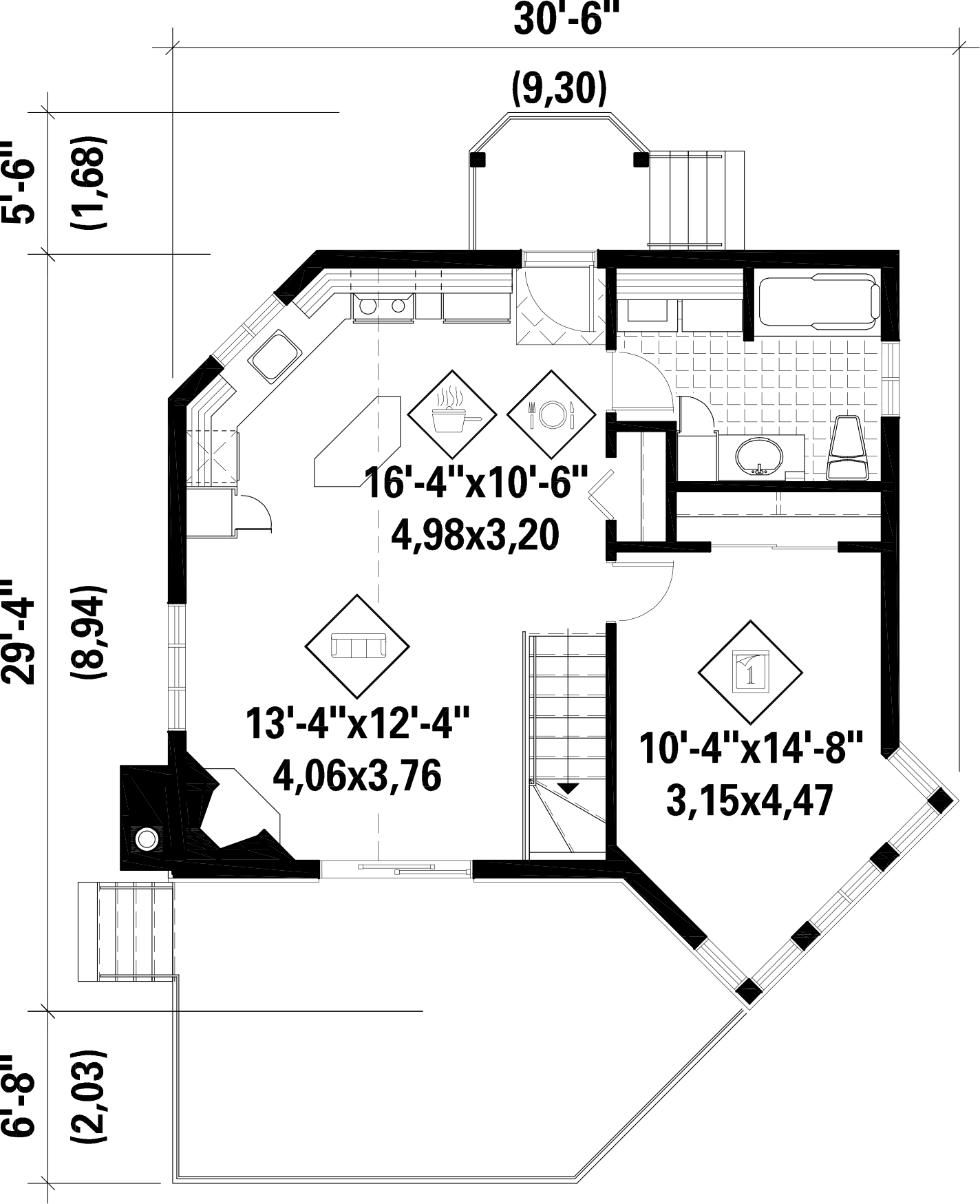 Ce joli chalet sera fort apprécié avec son abondante fenestration et sa terrasse. Il mesure 30 pieds et 6 pouces de largeur sur 29 pieds et 4 pouces de profondeur et offre une surface habitable de 696 pieds carrés.