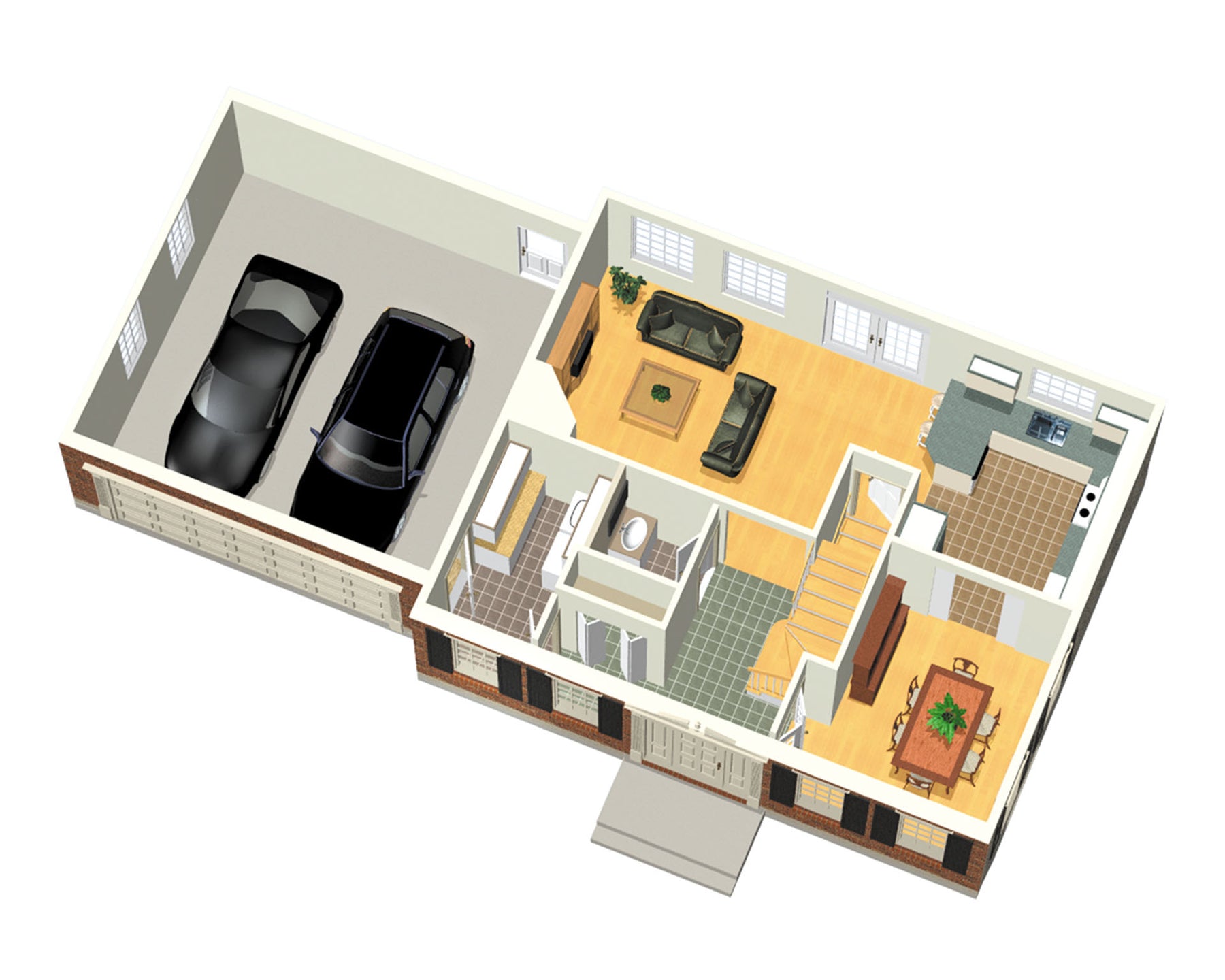 Le rez-de-chaussée qui occupe 832 pieds carrés comprend une cuisine, une salle à manger, un salon avec foyer, une salle d’eau, une salle de lavage et un garage double.
