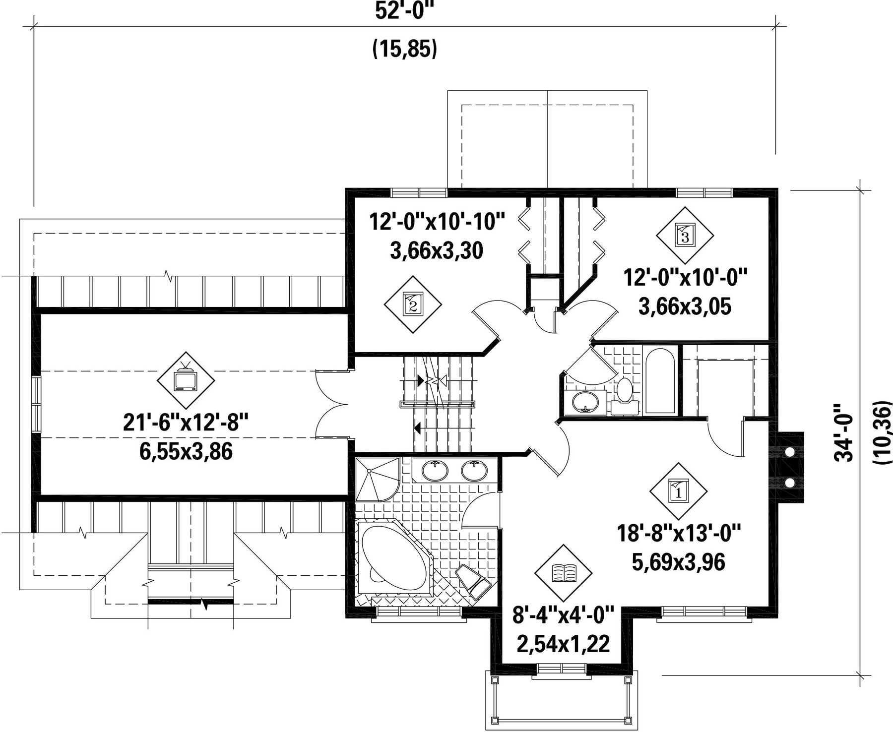 | Hauteur | 37 pi 2 po | Nombre de chambres | 3 |