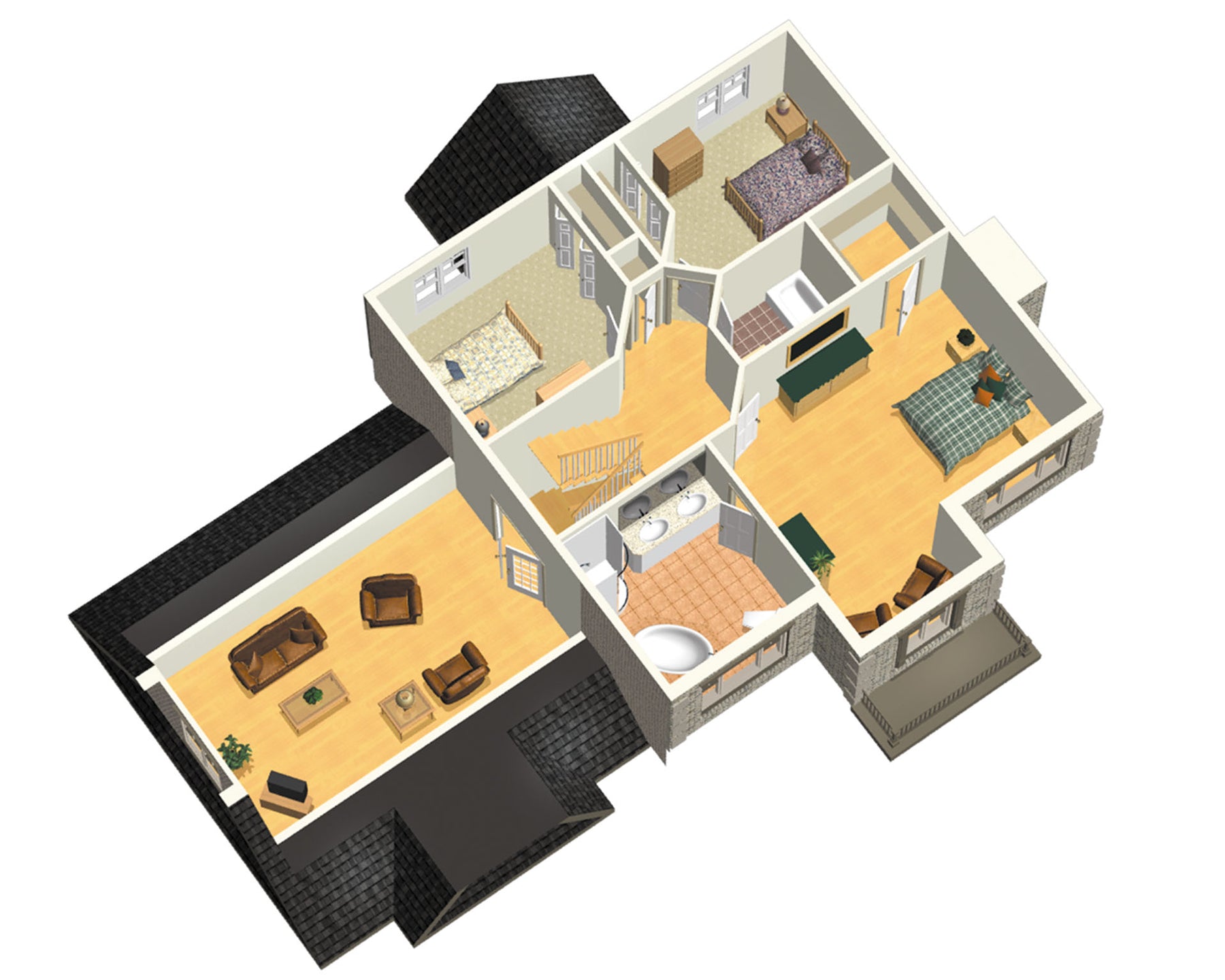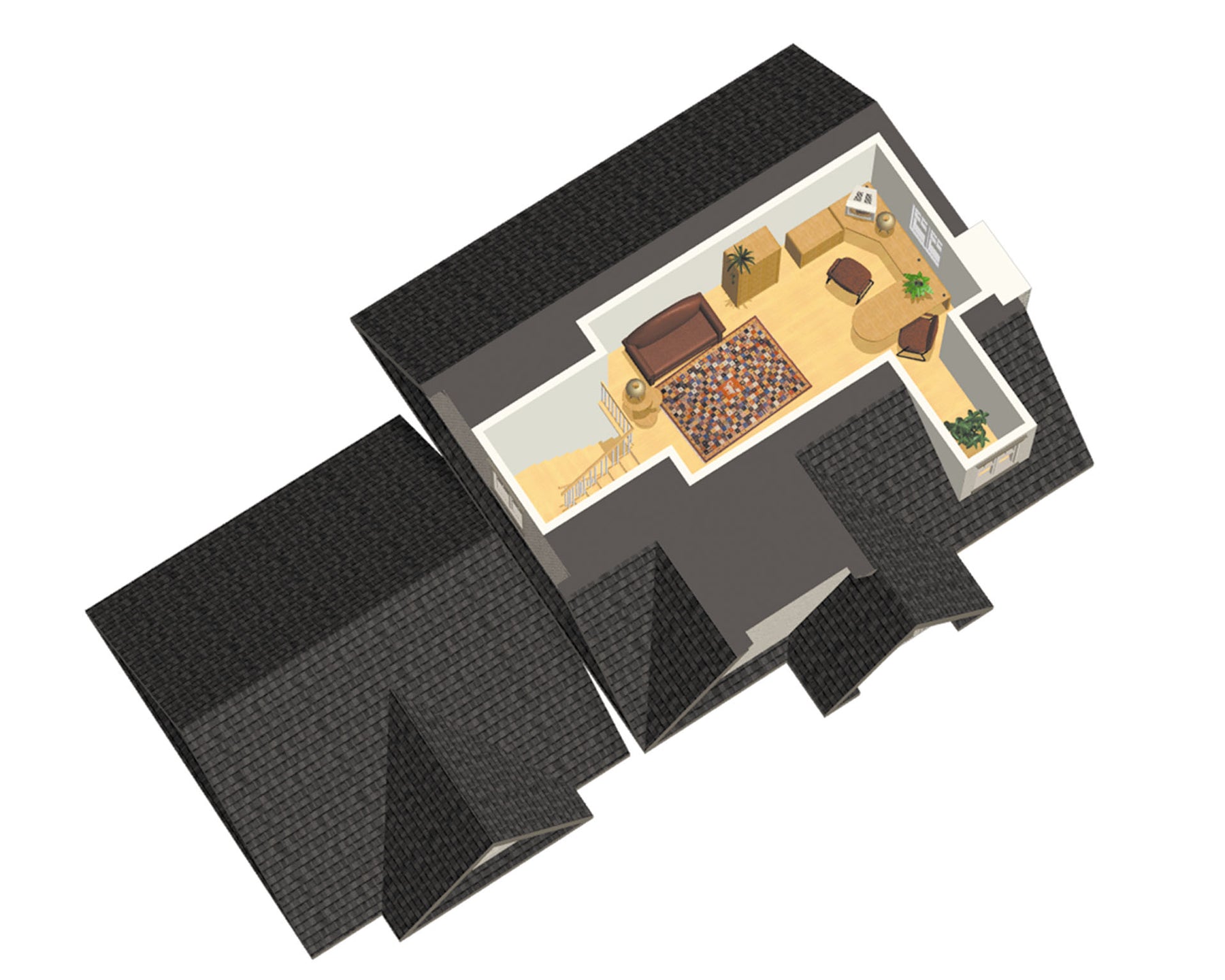 L’étage de 1 241 pieds carrés comprend une salle de bains familiale et trois chambres dont une chambre principale avec coin lecture et chambre de bains privée. Un loft de 361 pieds carrés situé au-dessus des chambres peut être aménagé en cinéma maison.