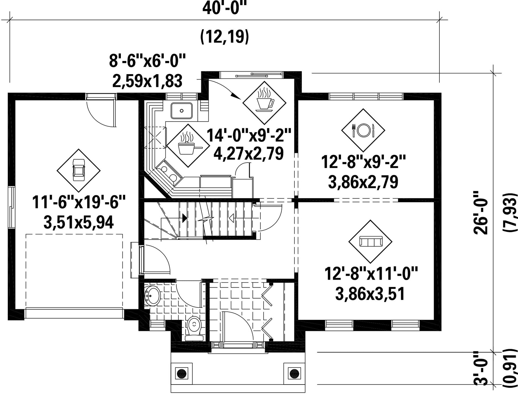 | Profondeur | 26 pi | Nombre de salles de bain | 1 |