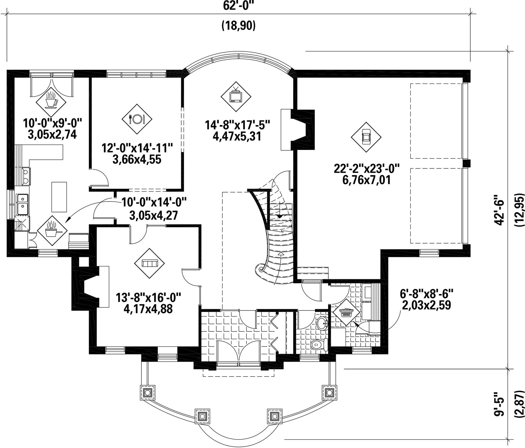 | Façade | 62 pi | Surface habitable totale | 3599 pi² |