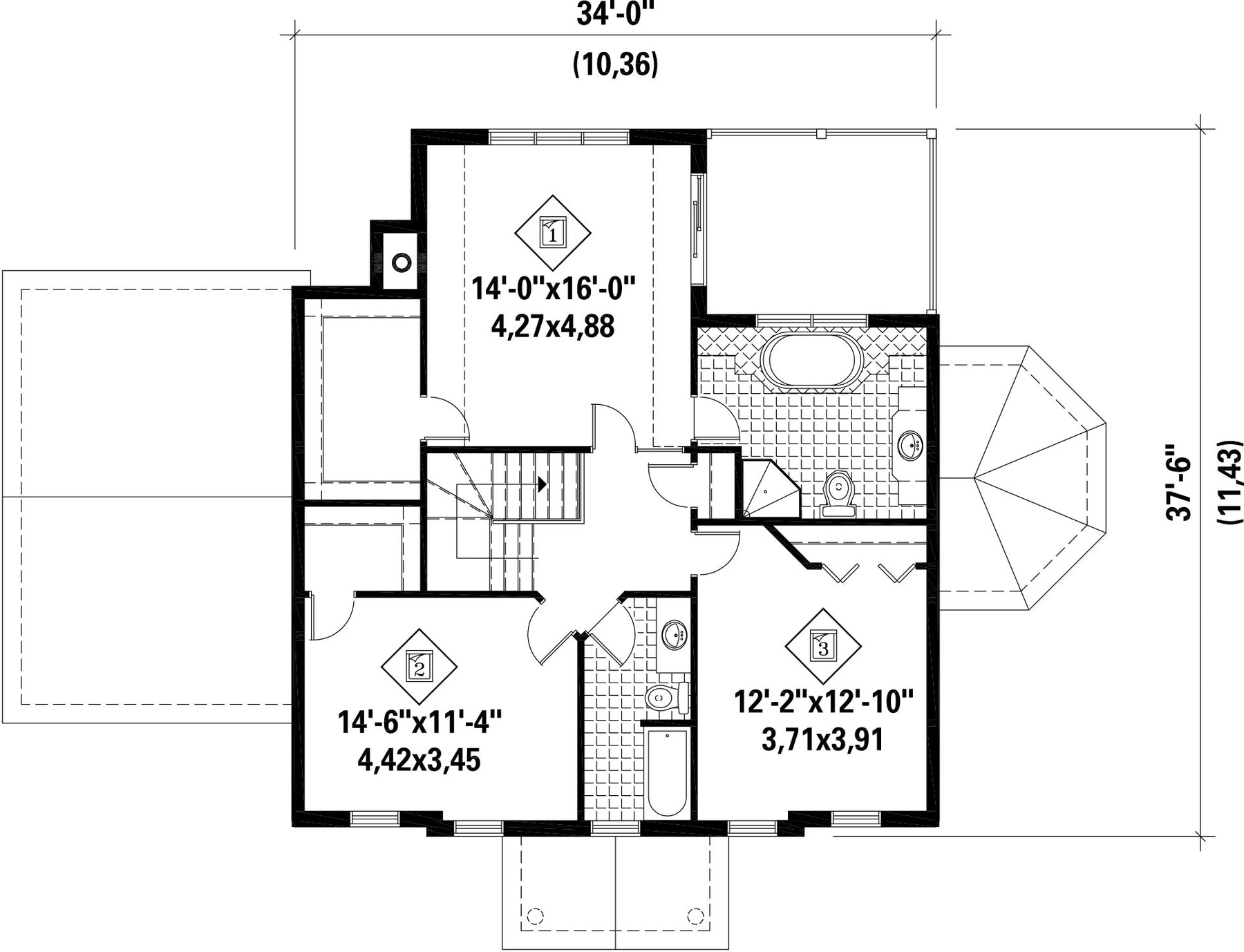 | Hauteur | 36 pi 7 po | Nombre de chambres | 3 |