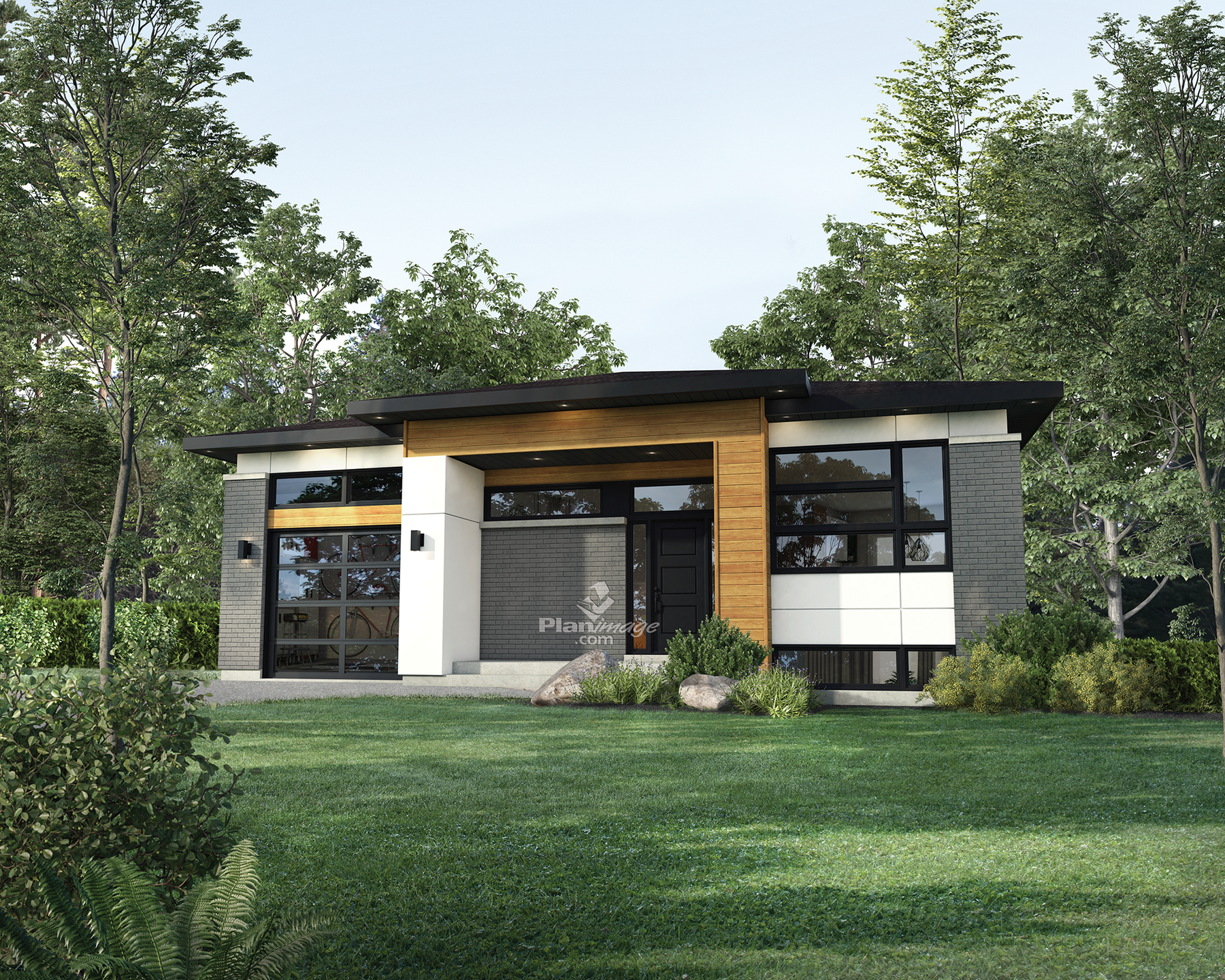 Cette maison de plain-pied de style urbain comprend un vestibule en contrebas avec de grandes fenêtres. Accueillante et chaleureuse, la demeure mesure 40 pieds de largeur sur 42 pieds de profondeur et possède une surface habitable de 1 359 pieds carrés en plus d’un garage simple.