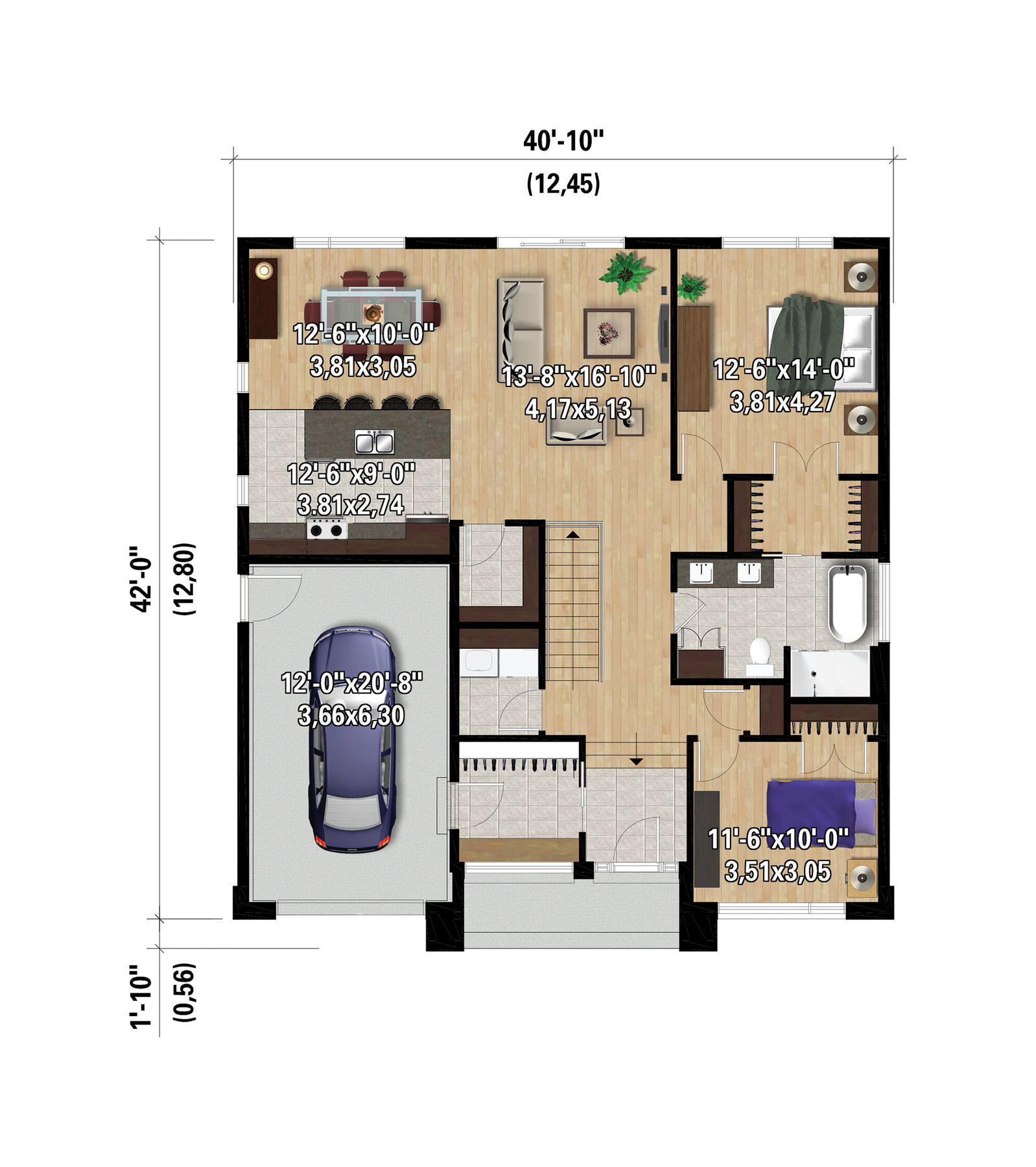 | Façade | 40 pi 10 po |