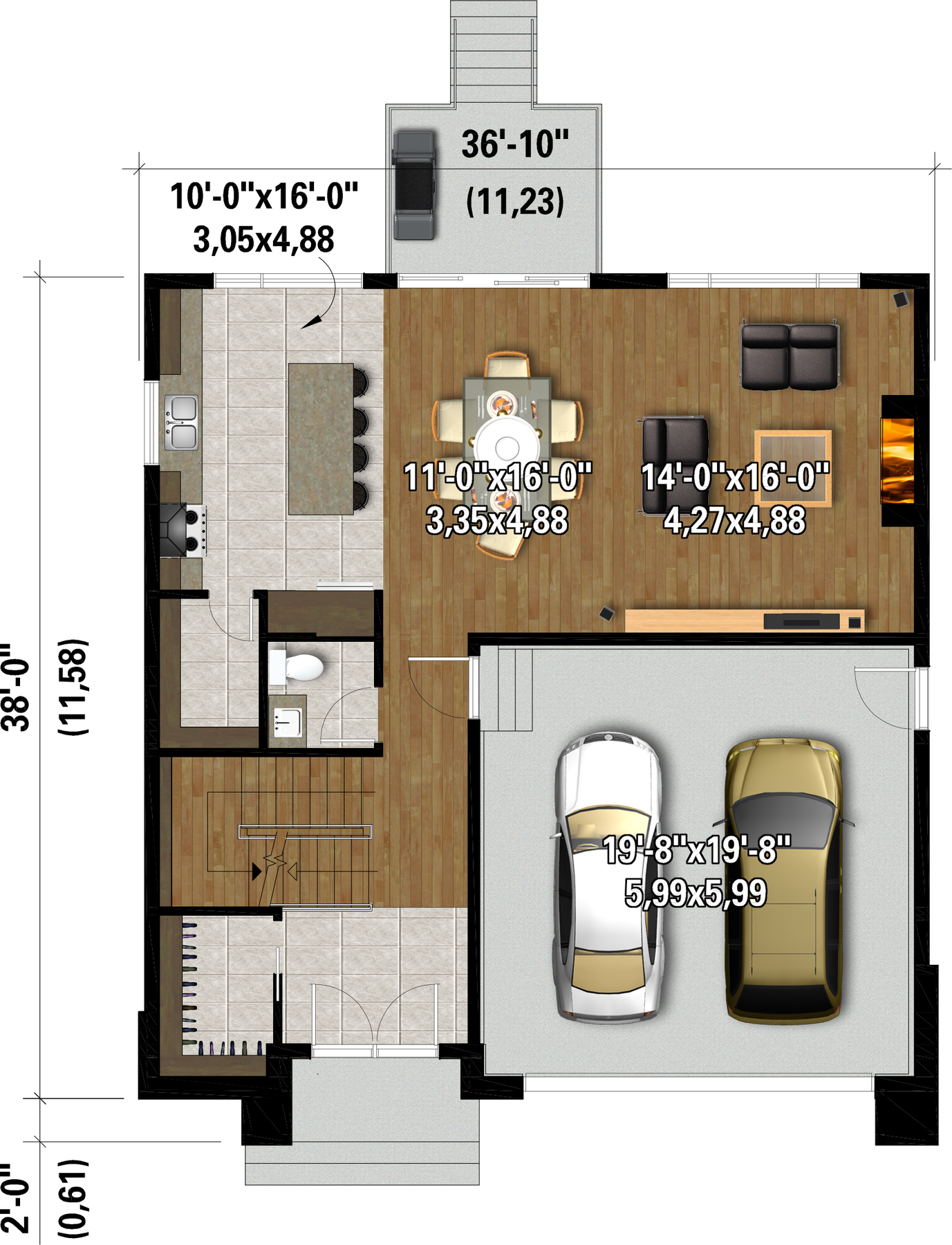Cette magnifique maison à étage se distingue par son look particulièrement urbain. Elle mesure 36 pieds de largeur sur 38 pieds de profondeur et offre une surface habitable de 2 184 pieds carrés en plus d’un grand garage de 435 pieds carrés pouvant accueillir 2 voitures.