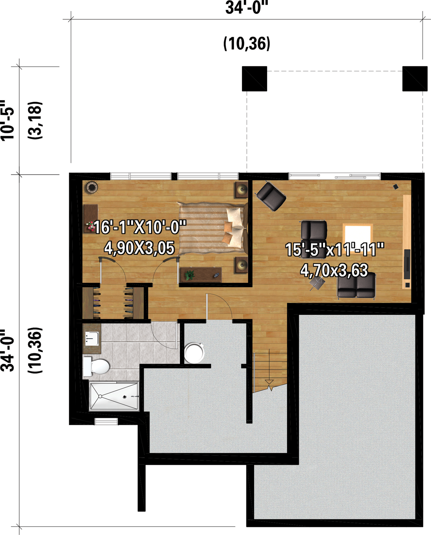 Ce magnifique chalet vous charmera avec son imposante entrée et sa terrasse surélevée. Ce modèle mesure 34 pieds de largeur par 34 pieds de profondeur et sa surface habitable est de 1729 pieds carrés.