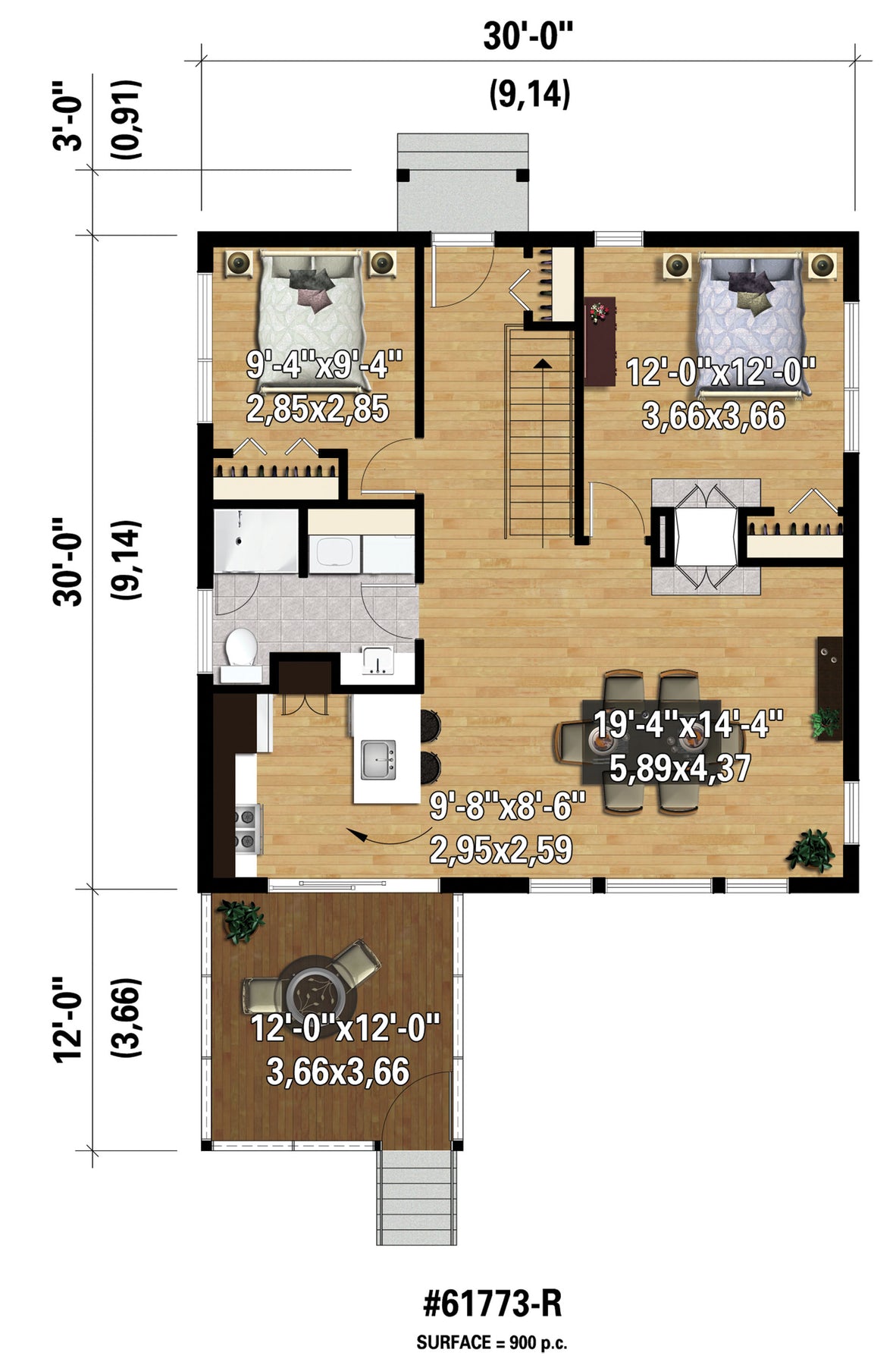 | Façade | 30 pi | Surface habitable totale | 900 pi² |