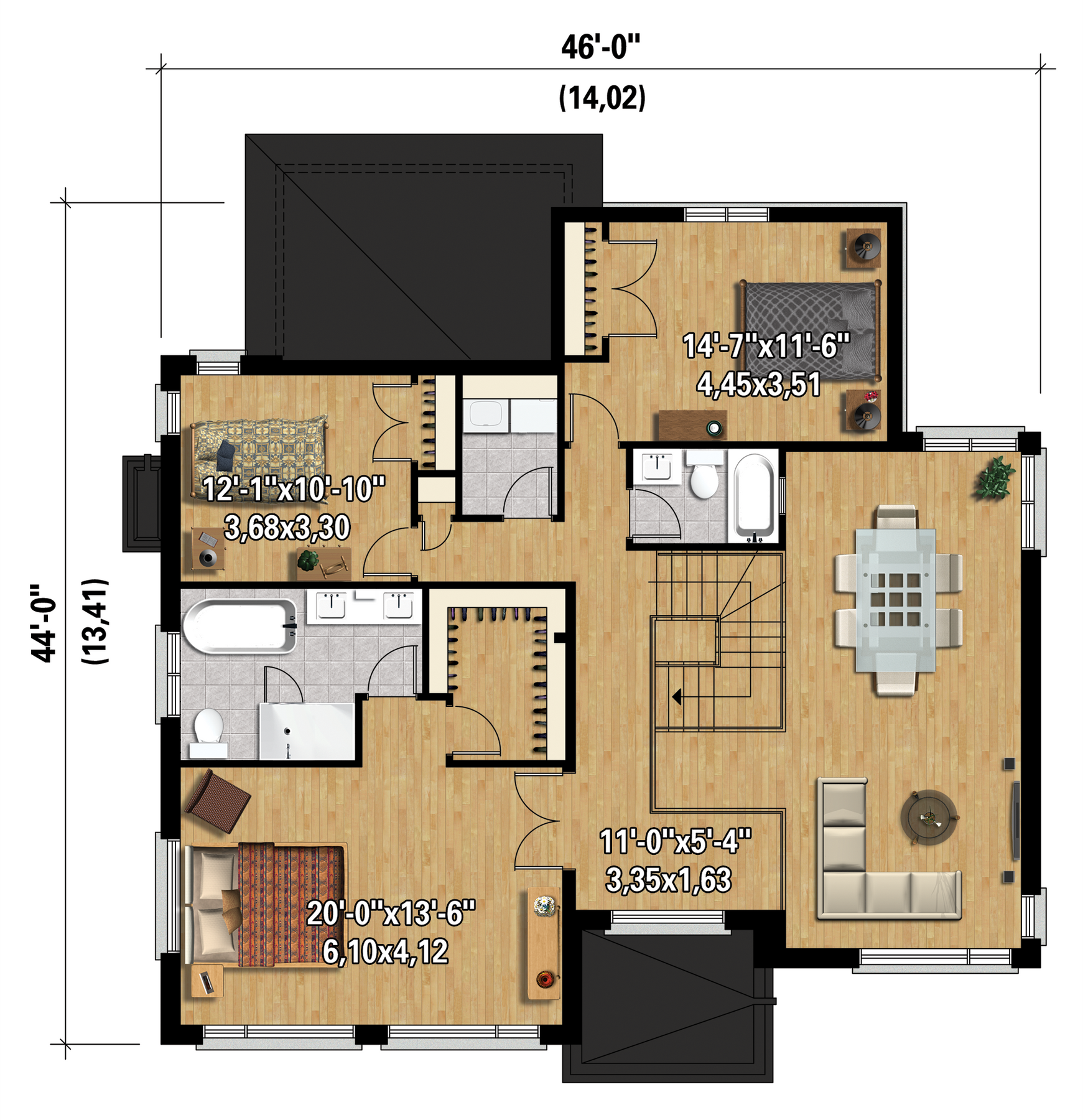 | Profondeur | 46 pi | Nombre de salles de bain | 2 |