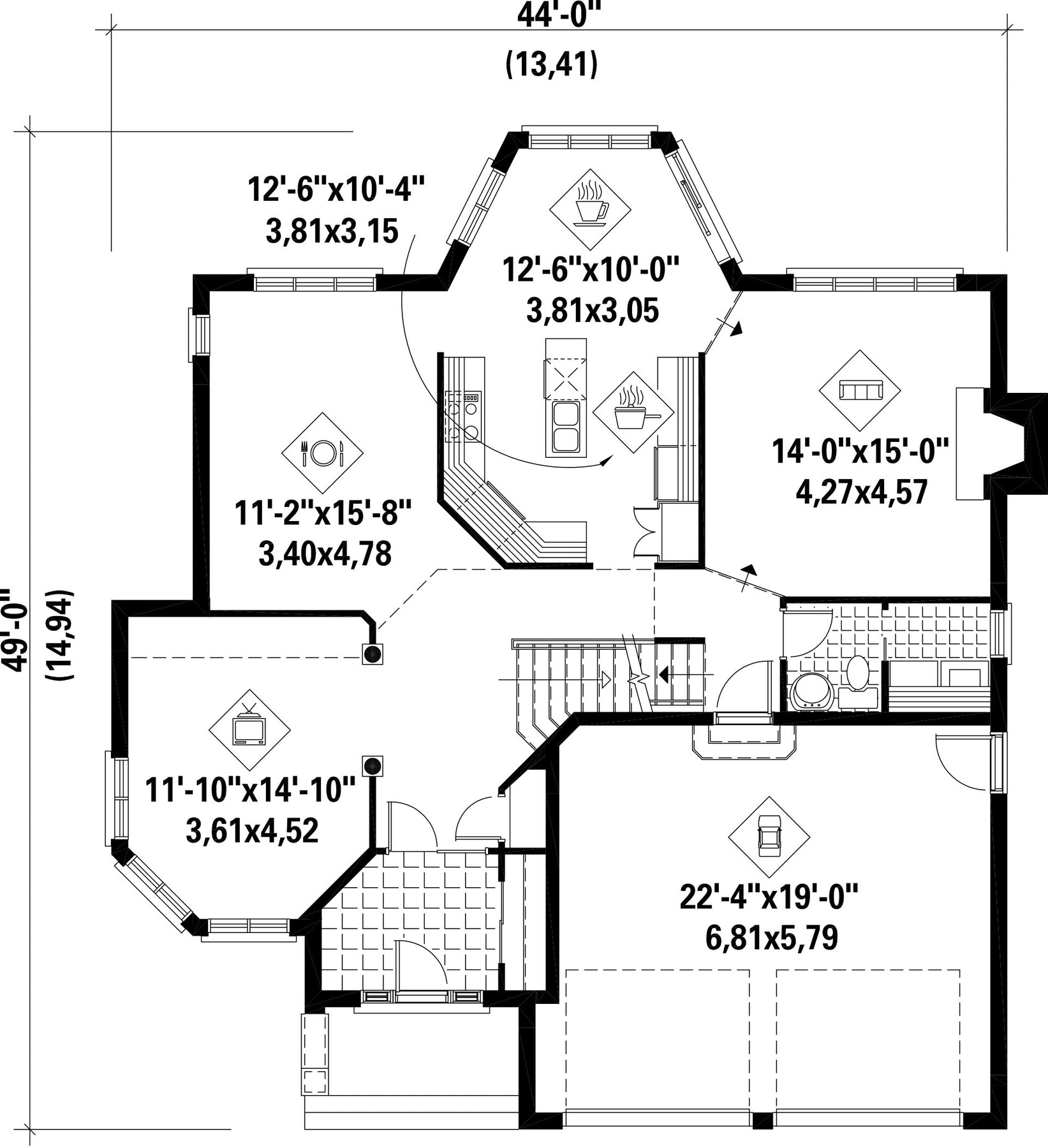 "Vestibule fermé Salon abaissé avec foyer Plafond de 14'-2"" de haut dans la salle familiale Chambre des maîtres avec penderie Salle de lavage au rez-de-chaussée"