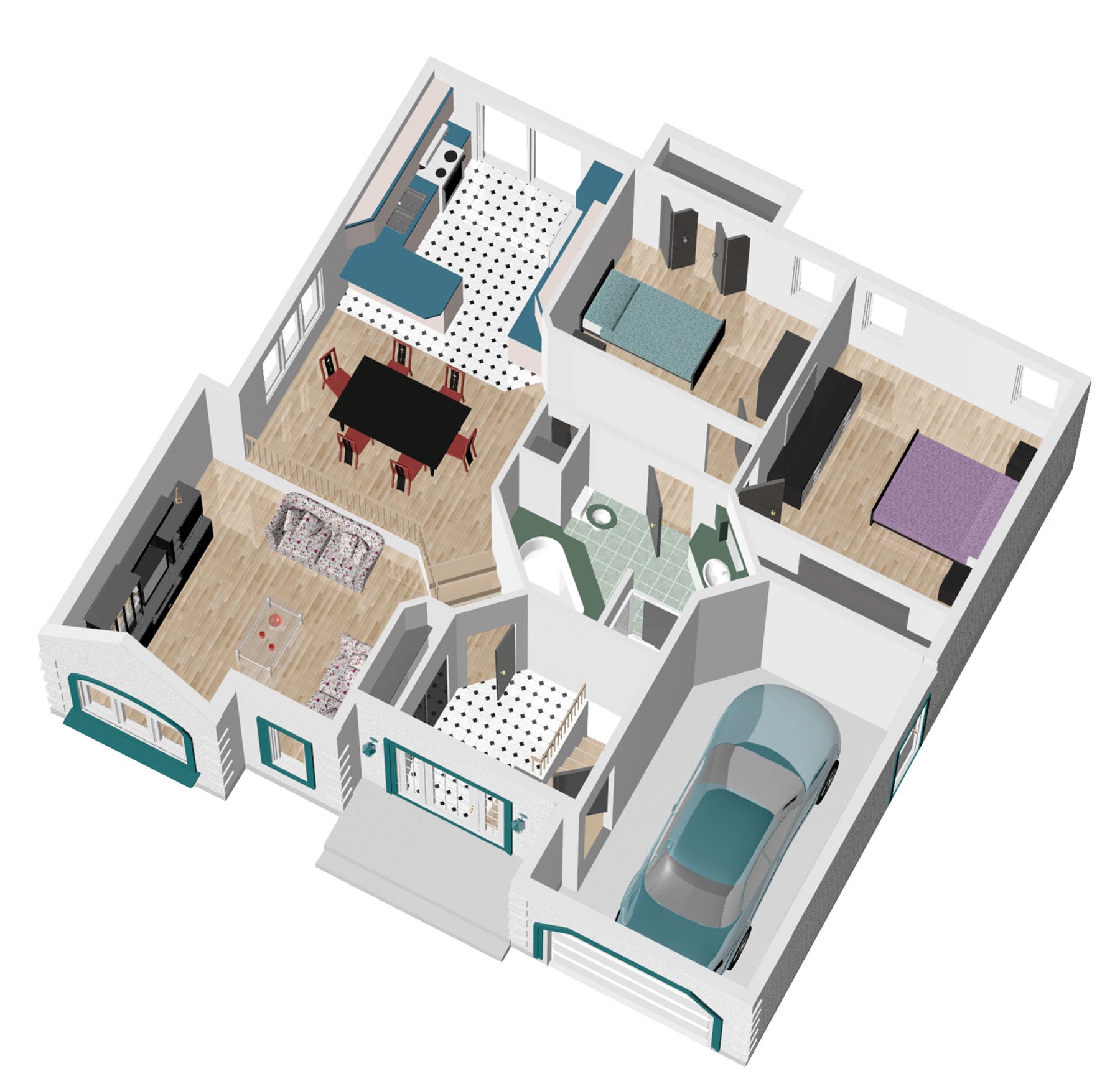 De la conception, en haut, à la réalisation, en bas, ce projet a bien tenu toutes ses promesses. Une maison pour un couple et leur enfant qui sera facile à vivre. Le garage accueille la voiture familiale.