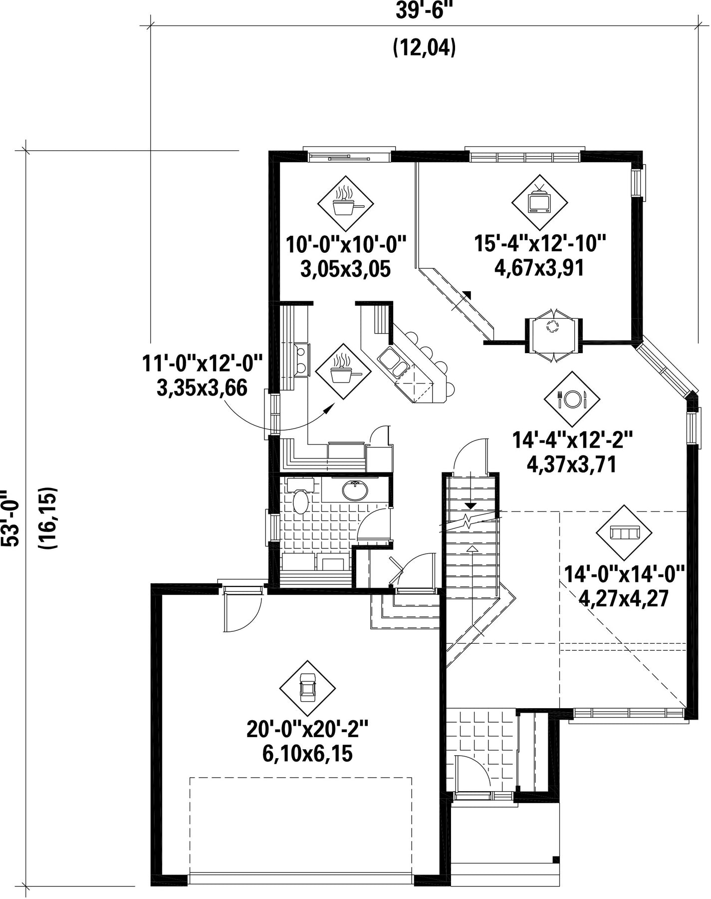 | Façade | 39 pi 6 po |