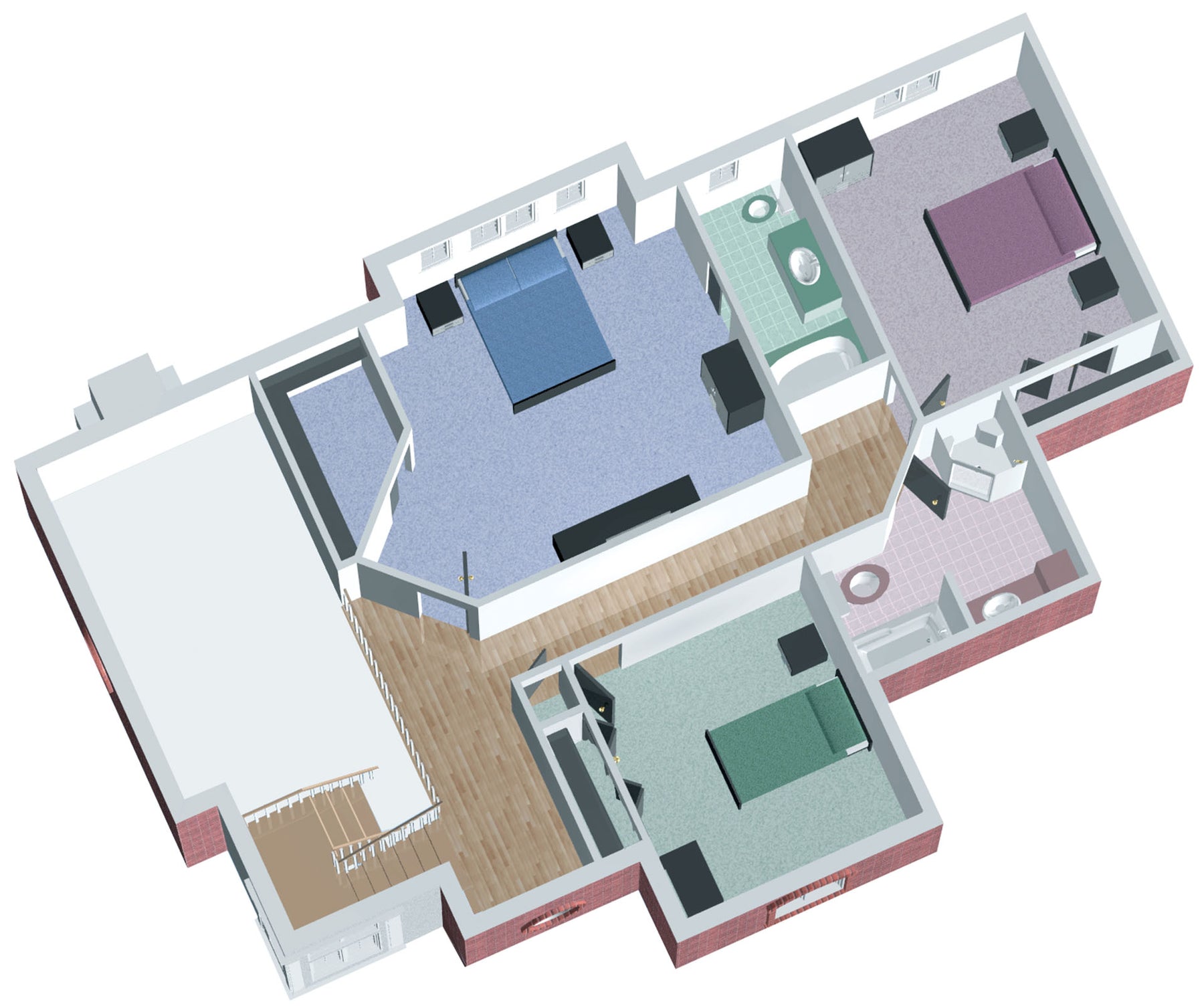 | Chambre des maîtres | Bain podium + Lavabo simple + Penderie + Toilettes |
