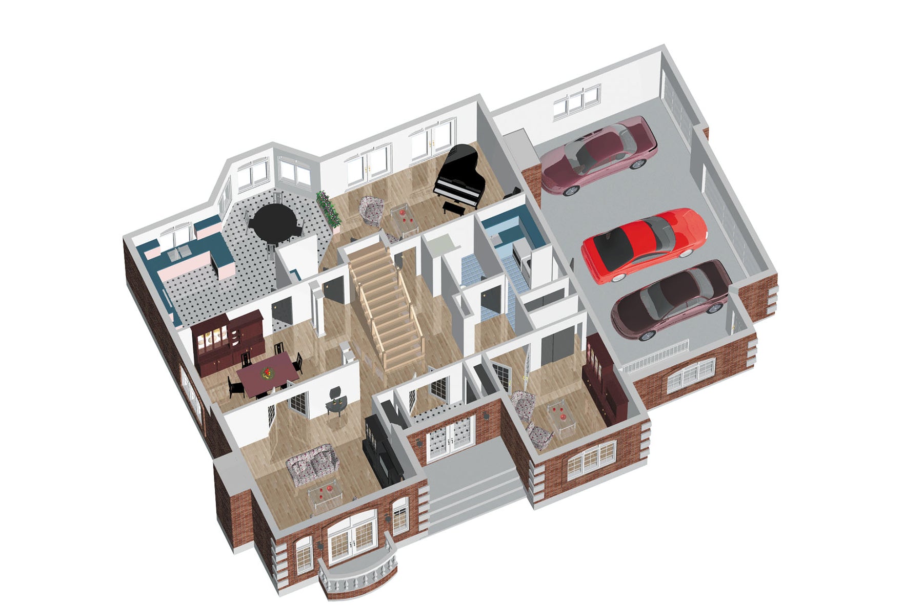 Au rez-de-chaussée, qui fait 1 912 pieds carrés, on retrouve un salon avec foyer, une vaste cuisine avec coin-repas, une salle à manger, une salle de lecture, une salle familiale avec un autre foyer, une salle d’eau, une salle de lavage et un garage triple de 792 pieds carrés avec un escalier menant au sous-sol.