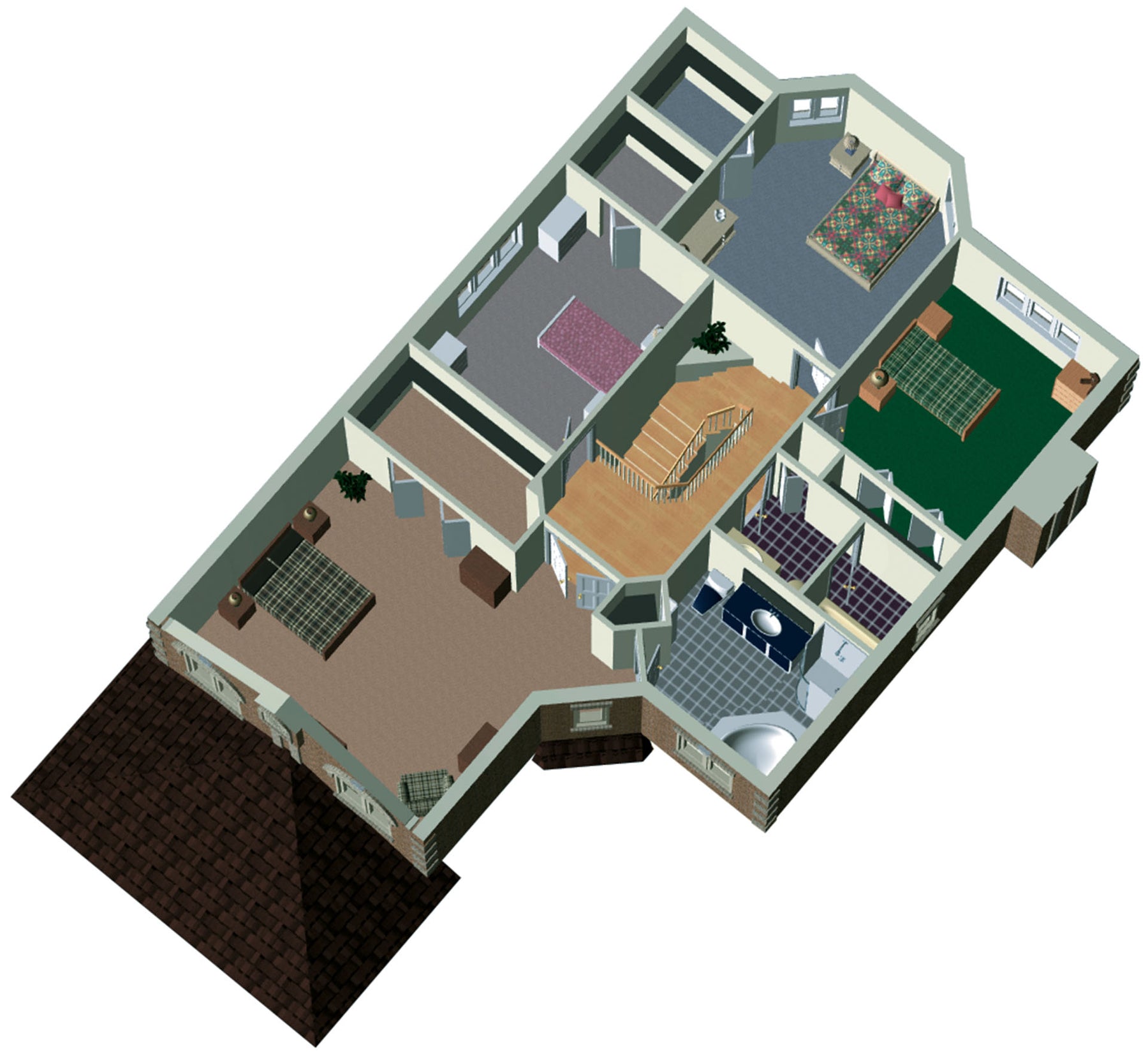 | Chambre des maîtres | Bain podium + Douche + Lavabo simple + Penderie + Portes doubles |