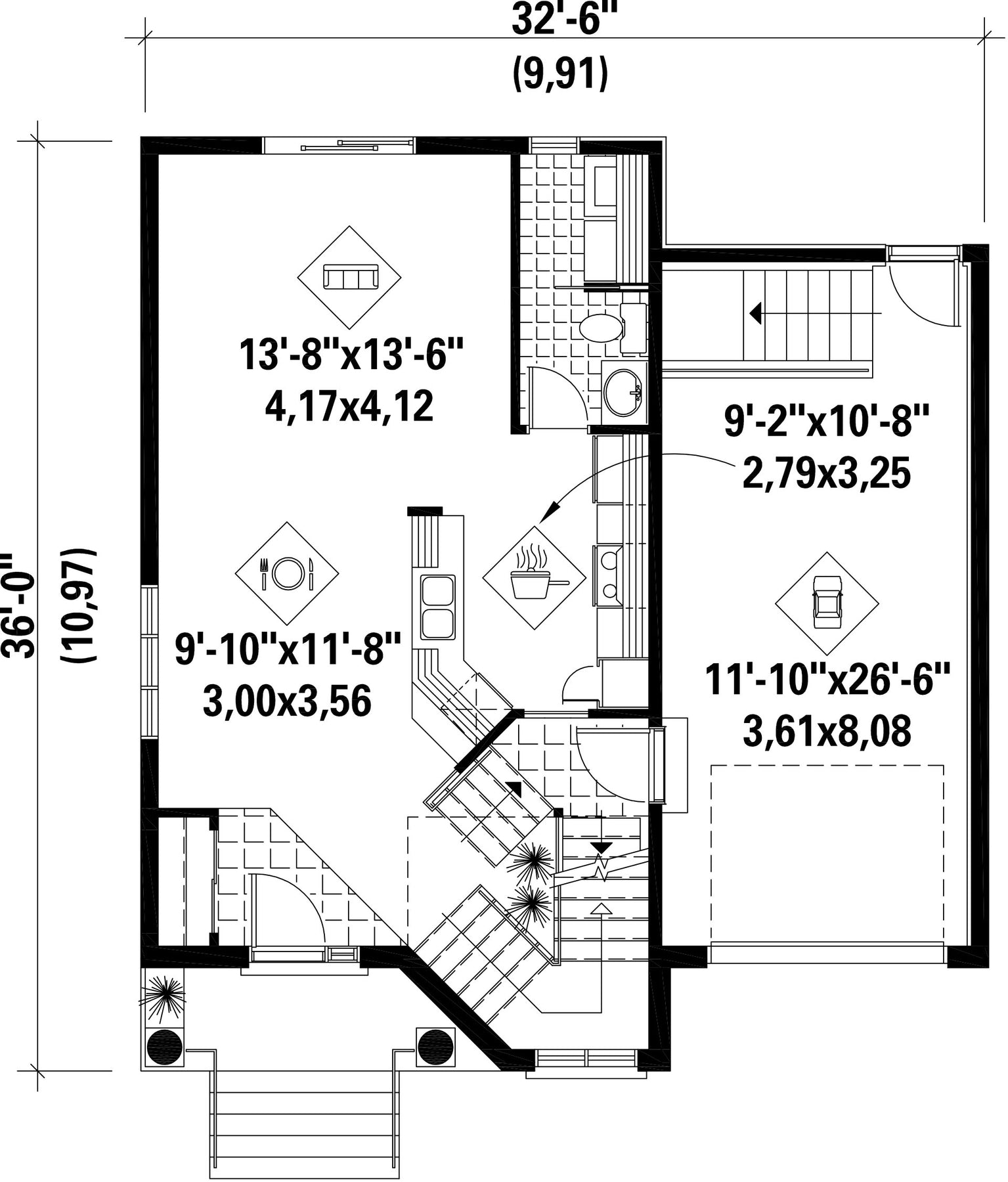 | Façade | 32 pi 6 po |