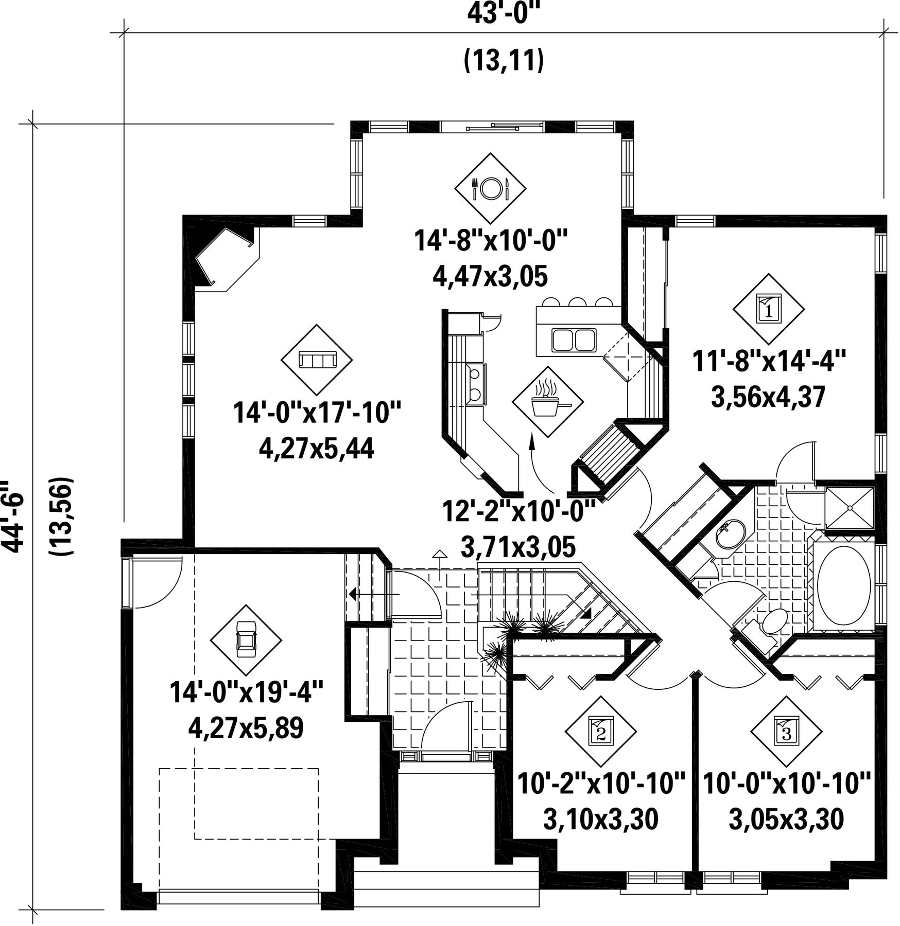 | Façade | 43 pi | Surface habitable totale | 1336 pi² |