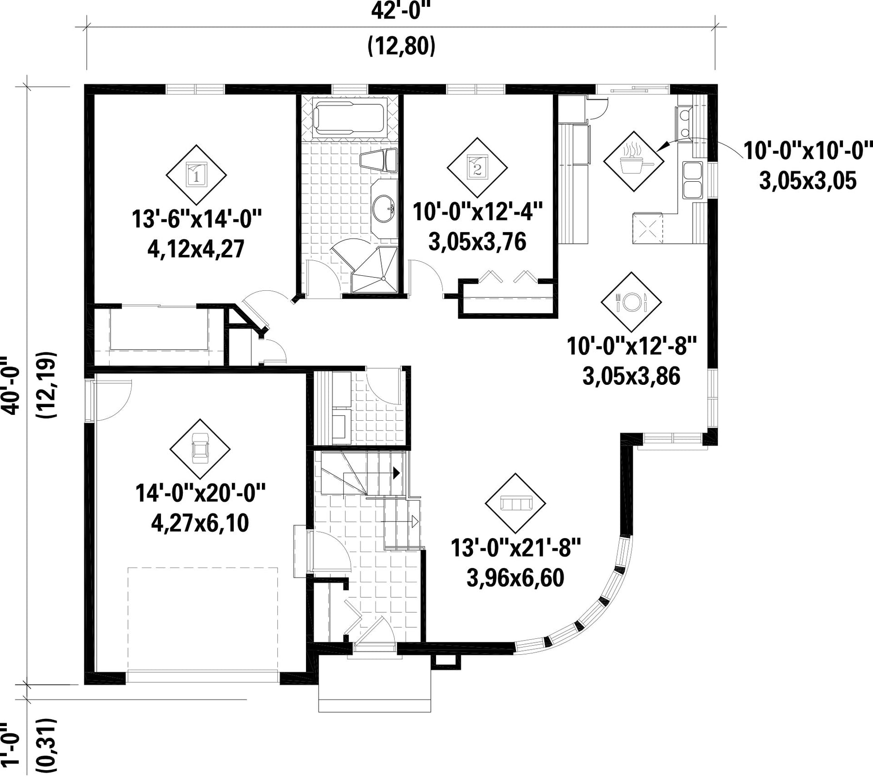 | Façade | 42 pi | Surface habitable totale | 1225 pi² |