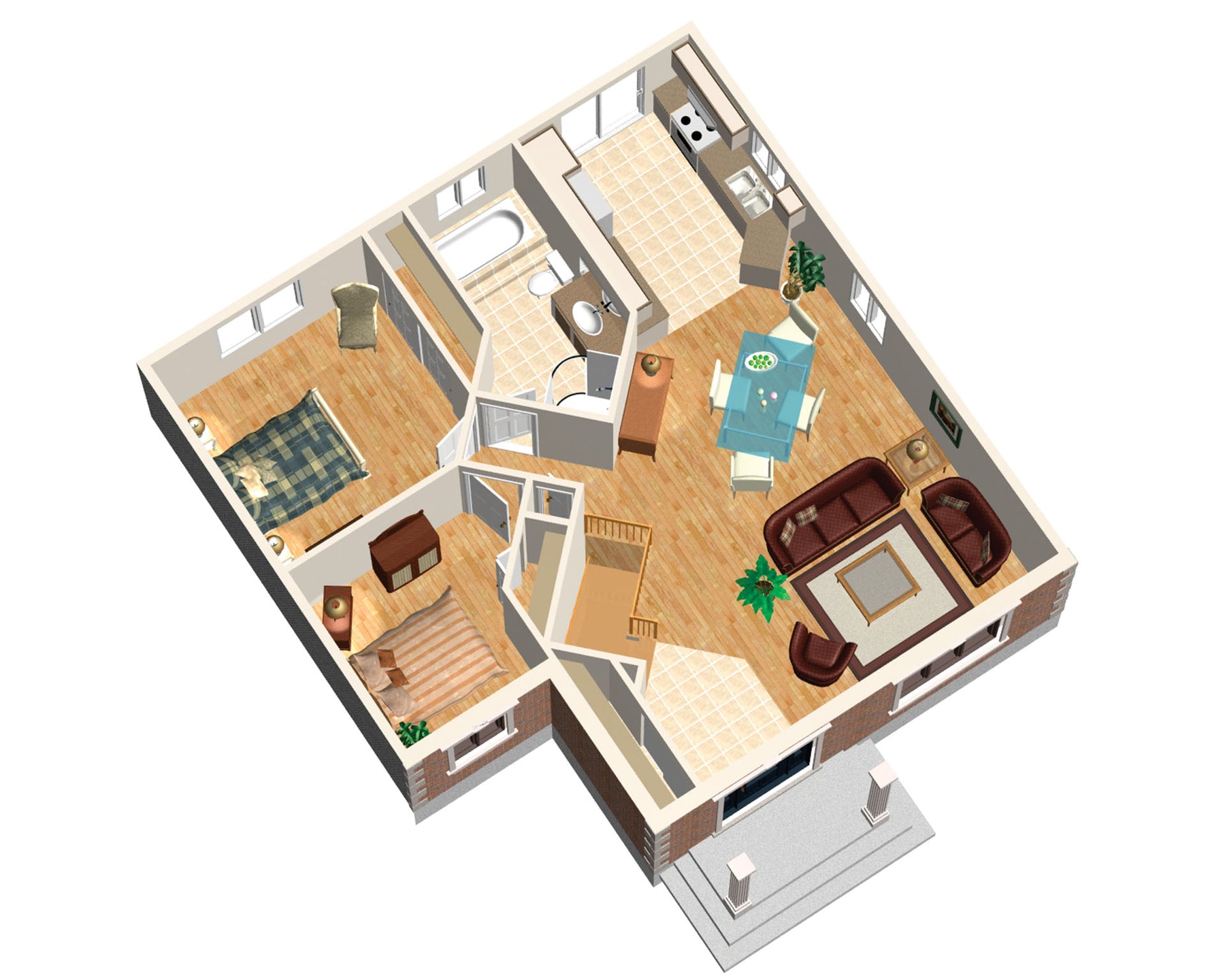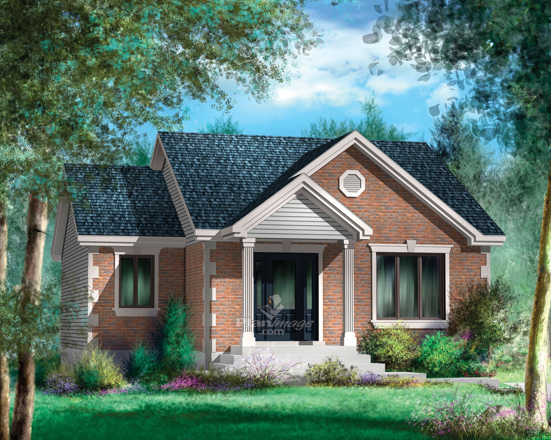 Cette maison de plain-pied d’apparence modeste ne manque pas de cachet avec son petit porche aux colonnes décoratives et ses coins français. Elle mesure 32 pieds de largeur sur 33 pieds de profondeur et offre une surface habitable de 984 pieds carrés.