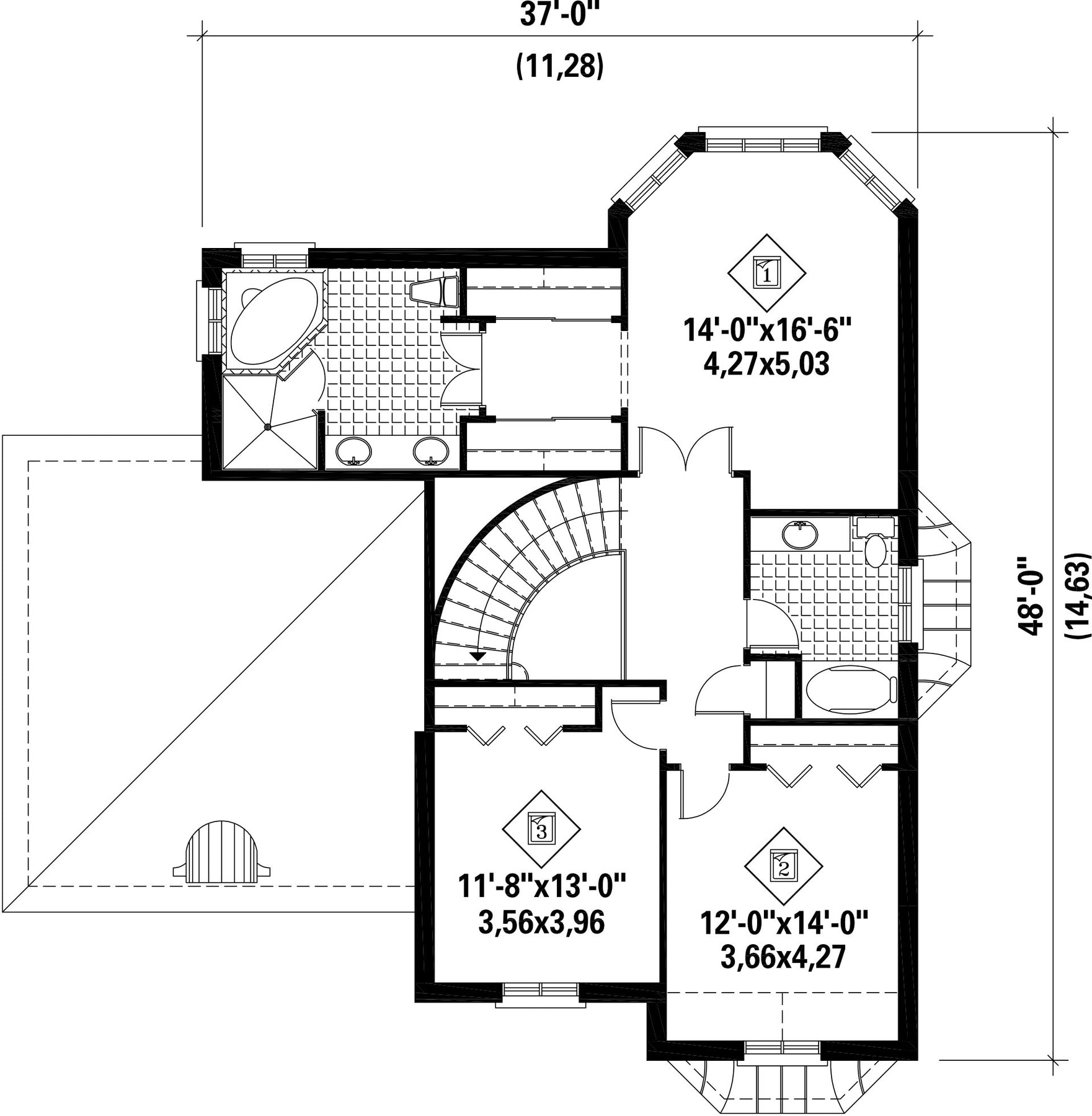 | Hauteur | 37 pi 9 po | Nombre de chambres | 3 |