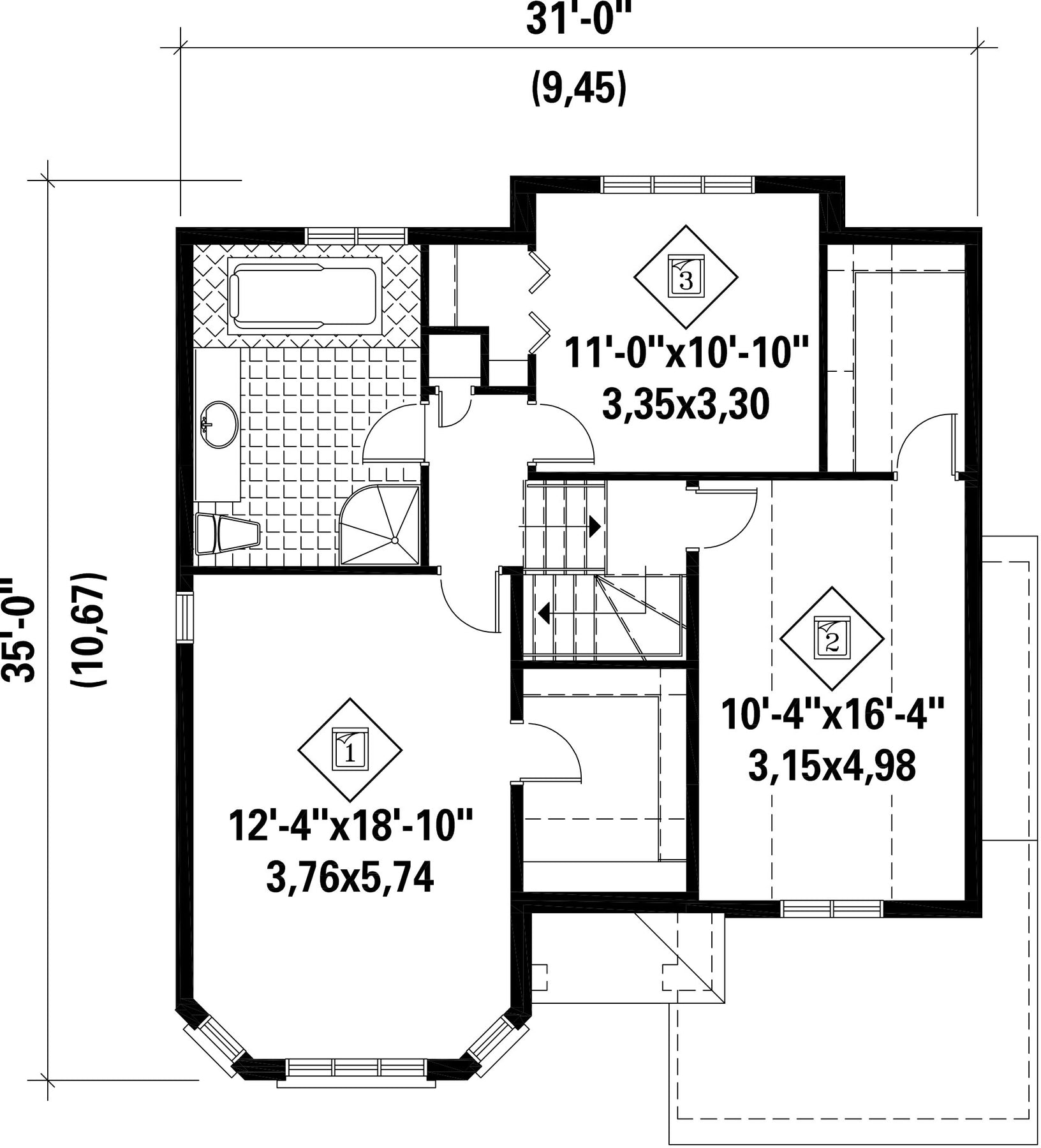 | Hauteur | 35 pi | Nombre de chambres | 3 |