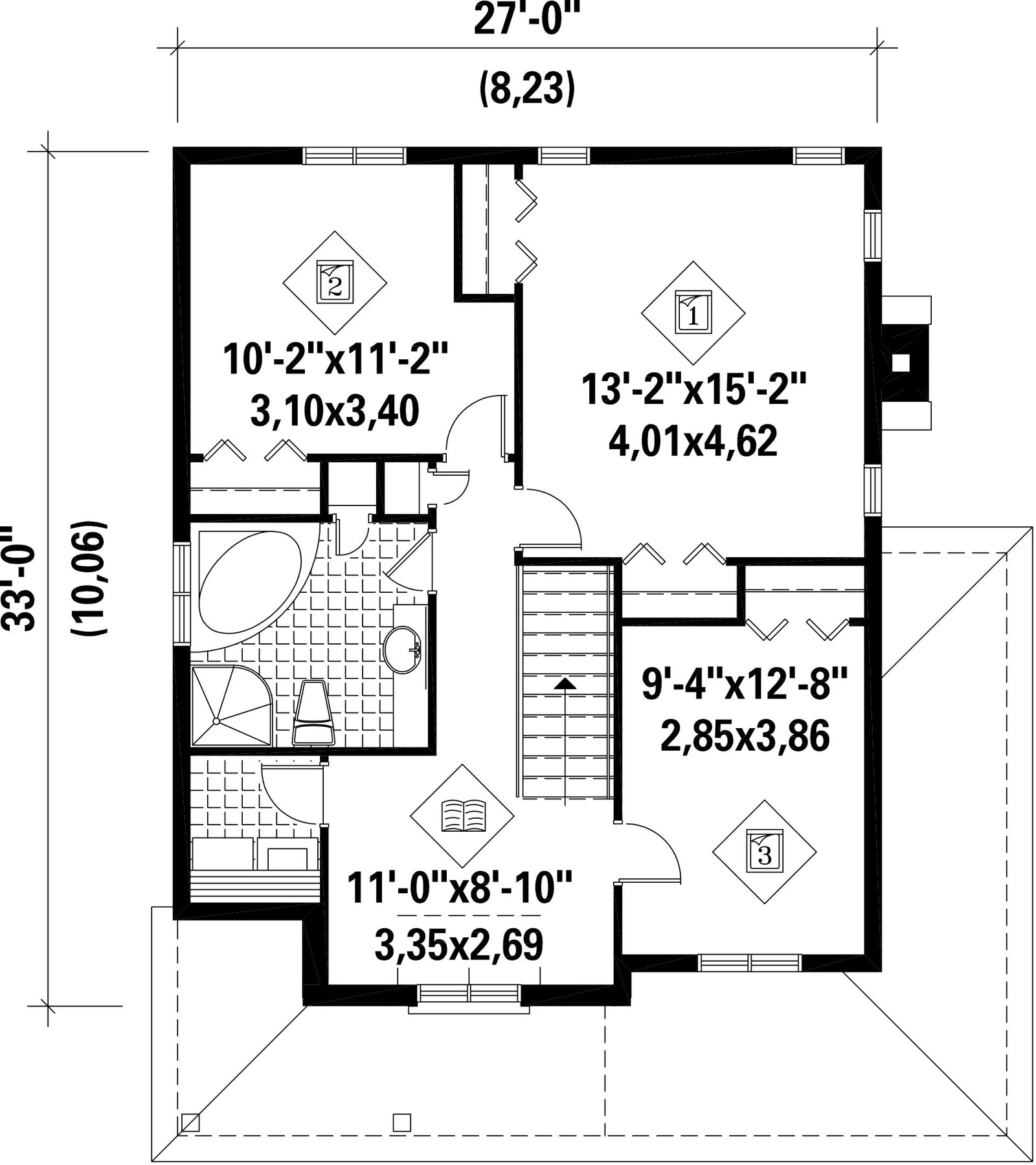| Hauteur | 29 pi 10 po | Nombre de chambres | 3 |