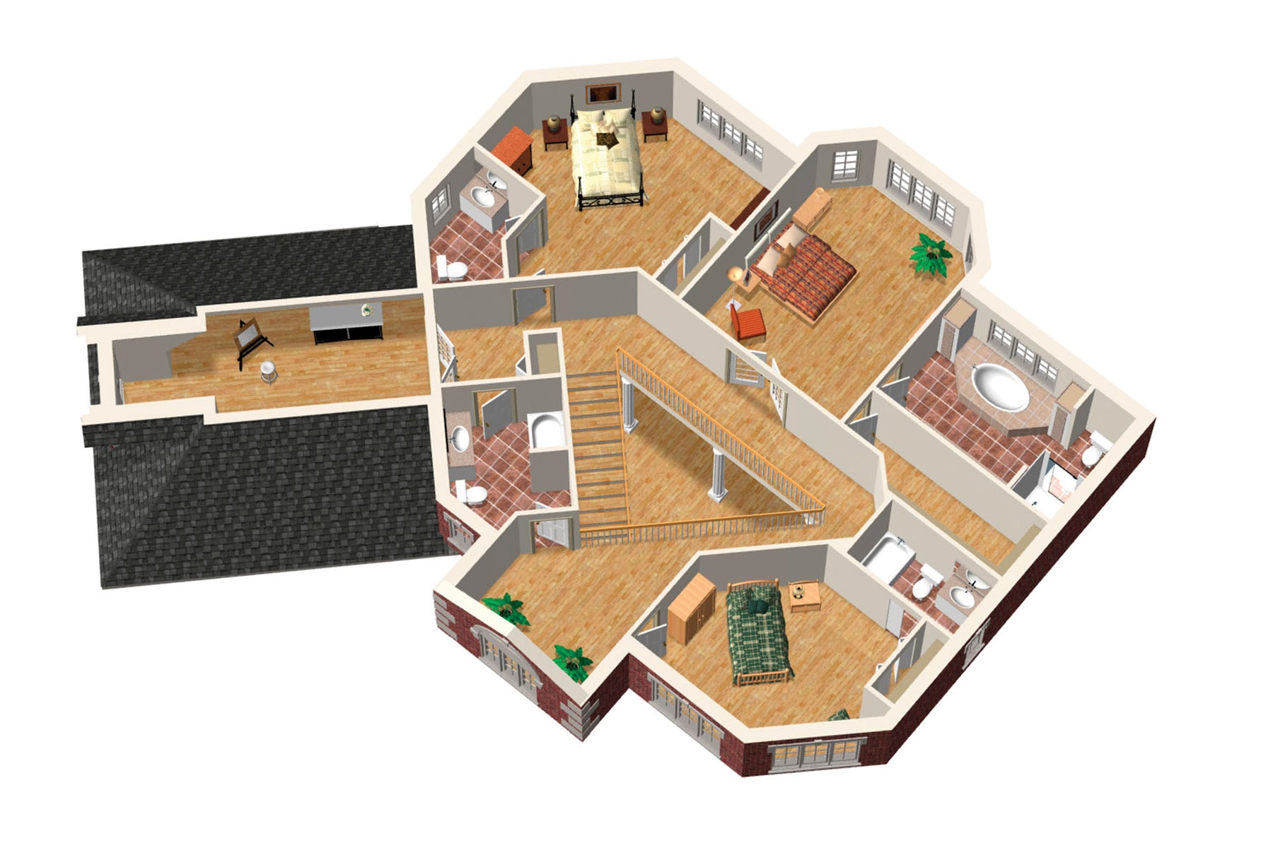 | Chambre des maîtres | Bain podium + Douche + Lavabo double + Penderie + Portes doubles + Toilettes | ||