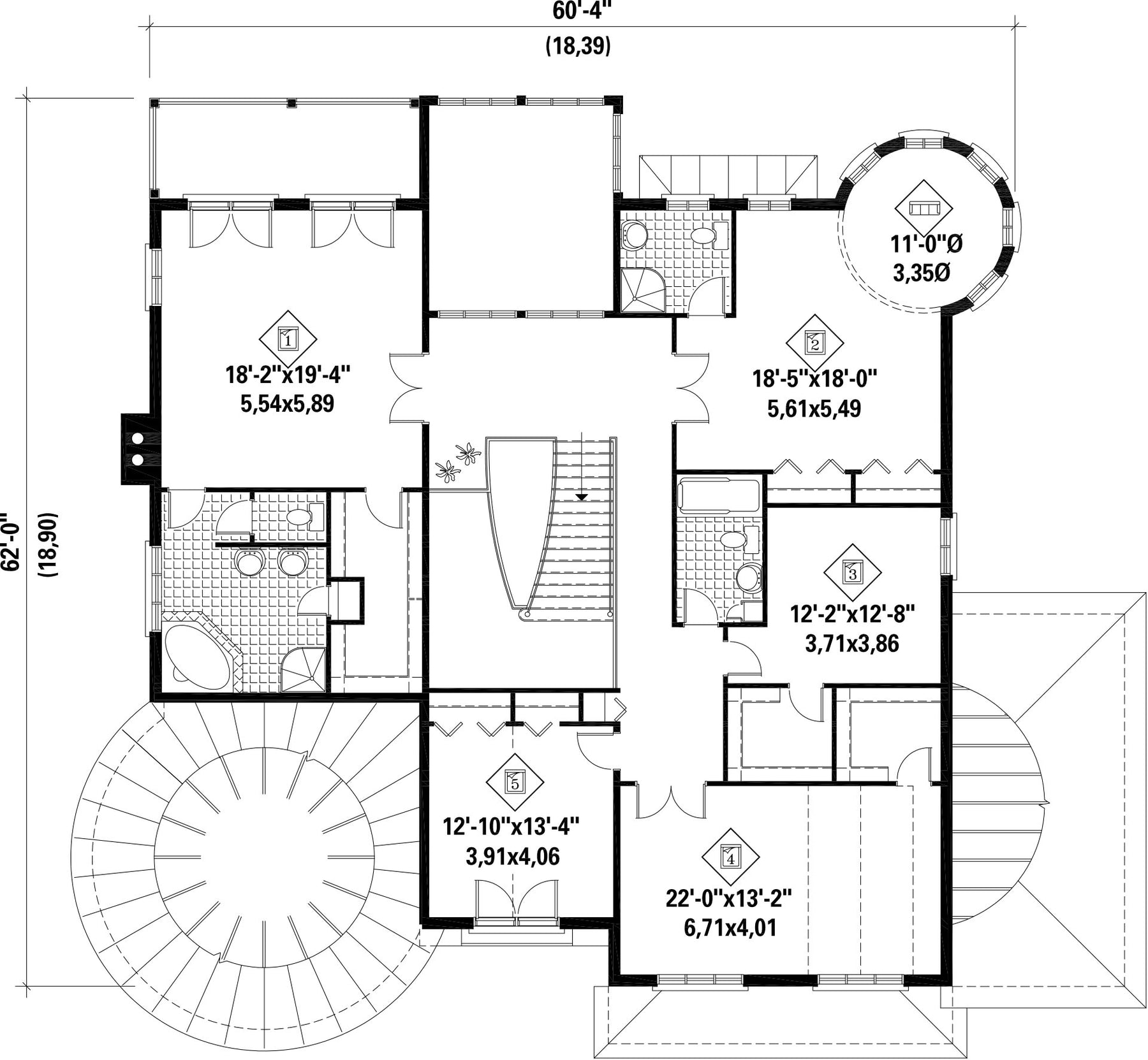 | Hauteur | 39 pi 10 po | Nombre de chambres | 5 |