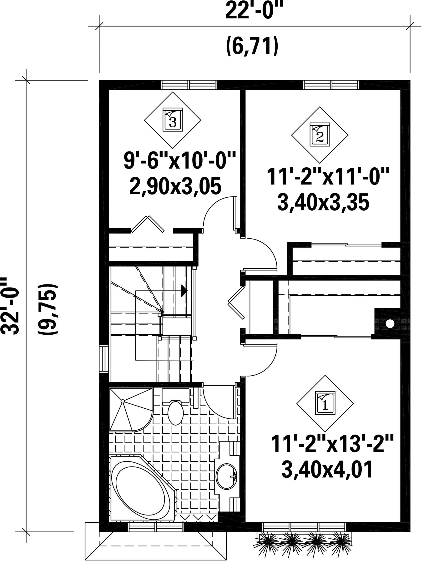 | Hauteur | 32 pi 3 po | Nombre de chambres | 3 |