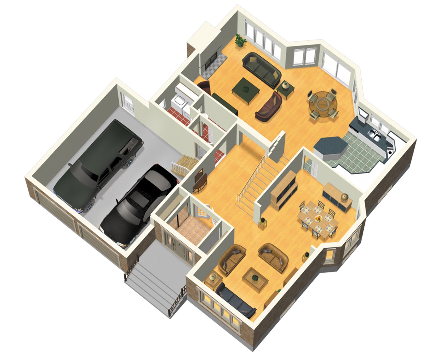Réparti sur 1 366 pieds carrés, le rez-de-chaussée comporte un vestibule fermé avec deux placards, une salle familiale avec foyer, un salon et une salle à manger à aire ouverte, une cuisine avec îlot et coin repas, et une salle d’eau adjacente à une salle de lavage.