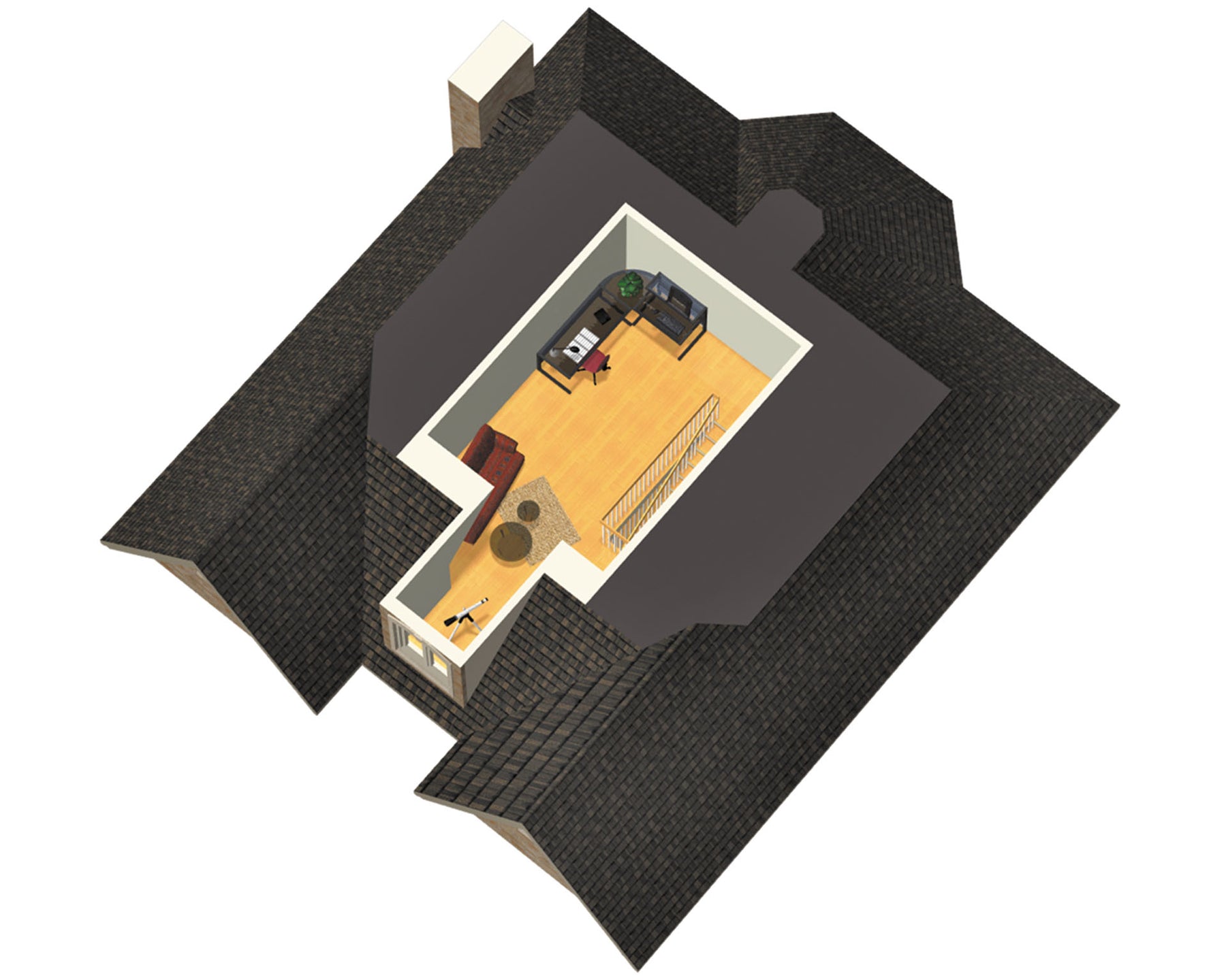 Finalement, sous les combles se trouve un loft de 353 pieds carré pouvant servir de bureau ou d’atelier.