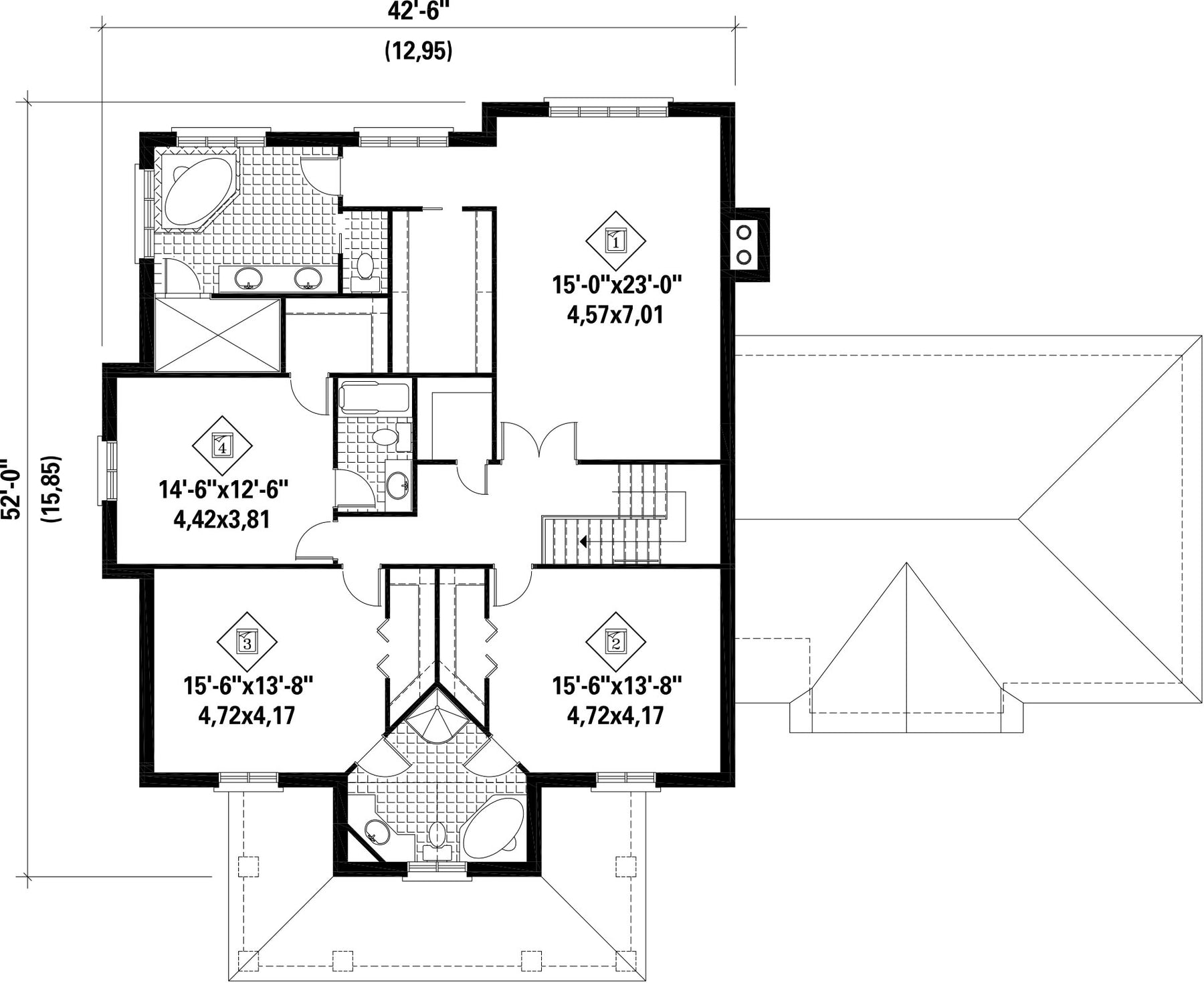 Hauteur 44 pi 8 poNombre de chambres 4
