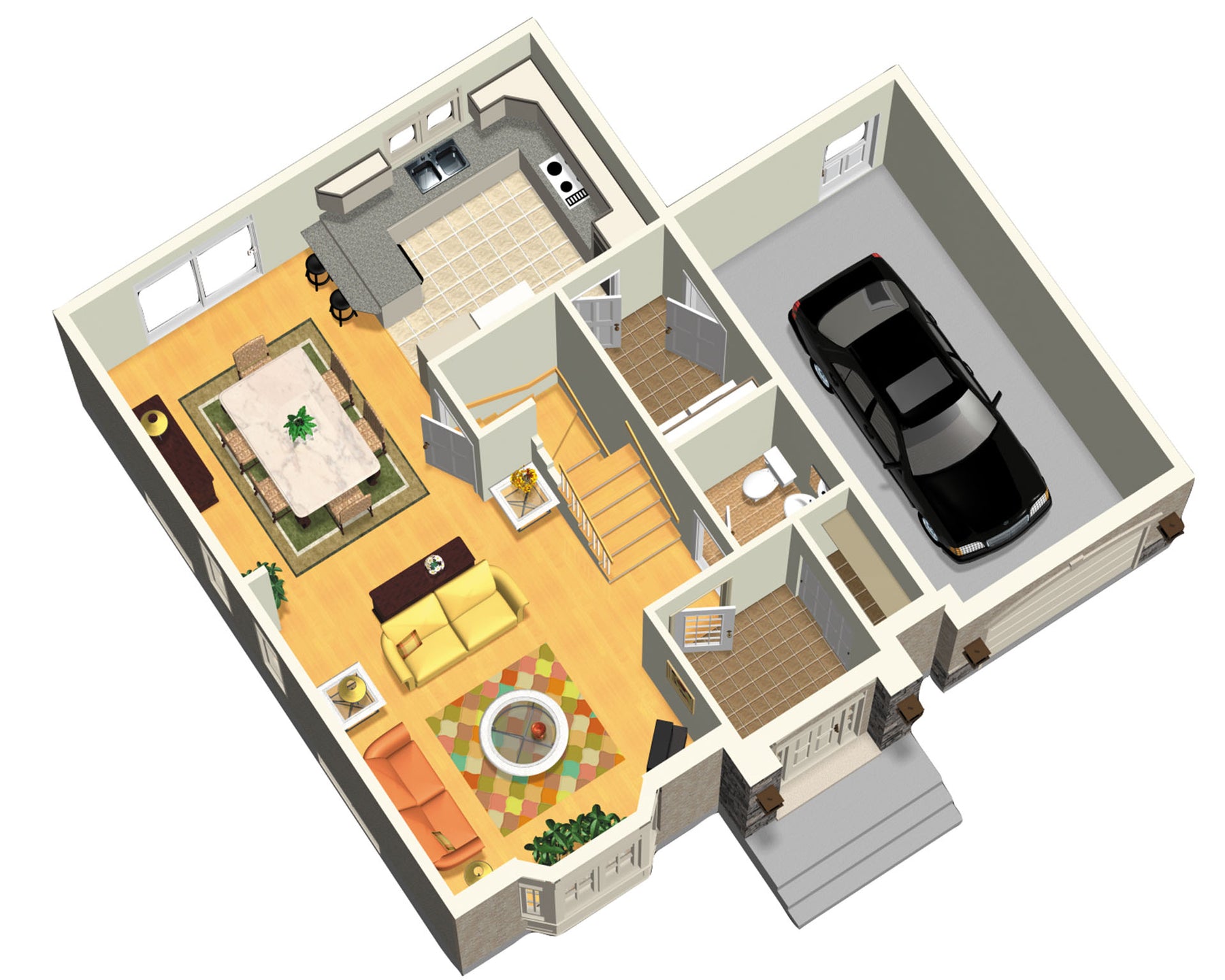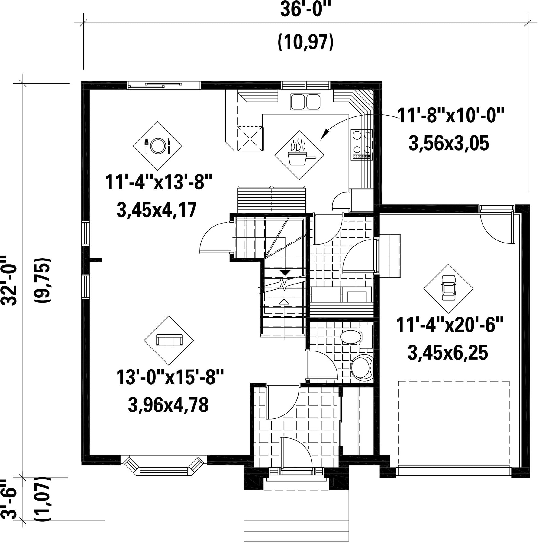 Disposant d’une superficie de 753 pieds carrés, le rez-de-chaussée compte un salon et une salle à manger à aire ouverte, une cuisine en U avec comptoir repas, une salle d’eau avec salle de lavage attenante, ainsi qu’un garage de 264 pieds carrés pouvant loger une voiture.