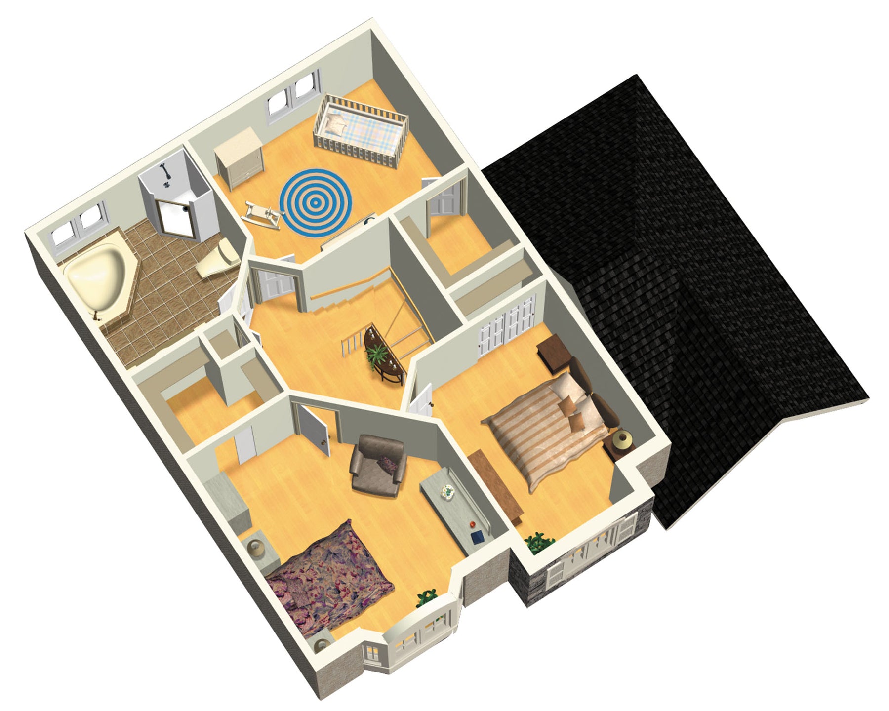 L’étage de 761 pieds carrés comprend une salle de bains familiale et trois chambres dont une chambre des maîtres disposant d’une vaste penderie.