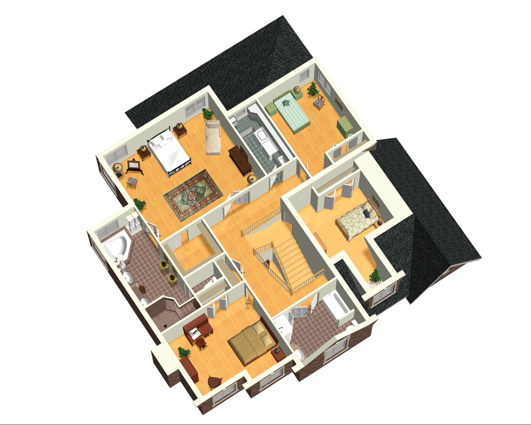 | Chambre des maîtres | Bain podium + Douche + Lavabo double + Penderie + Portes doubles + Toilettes |