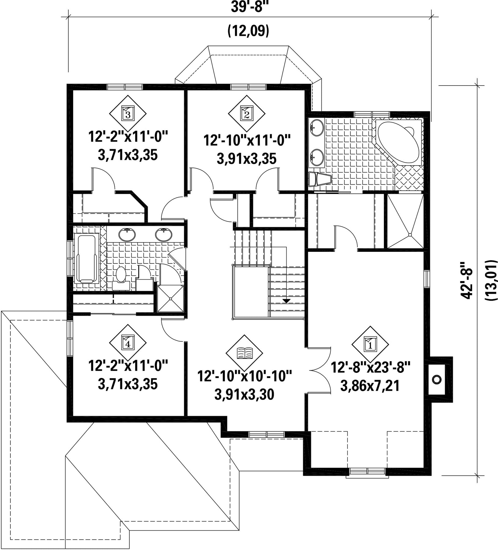 | Hauteur | 39 pi 4 po | Nombre de chambres | 4 |
