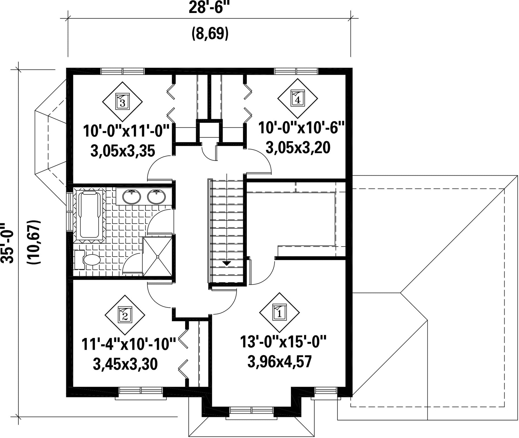 | Hauteur | 38 pi 5 po | Nombre de chambres | 4 |