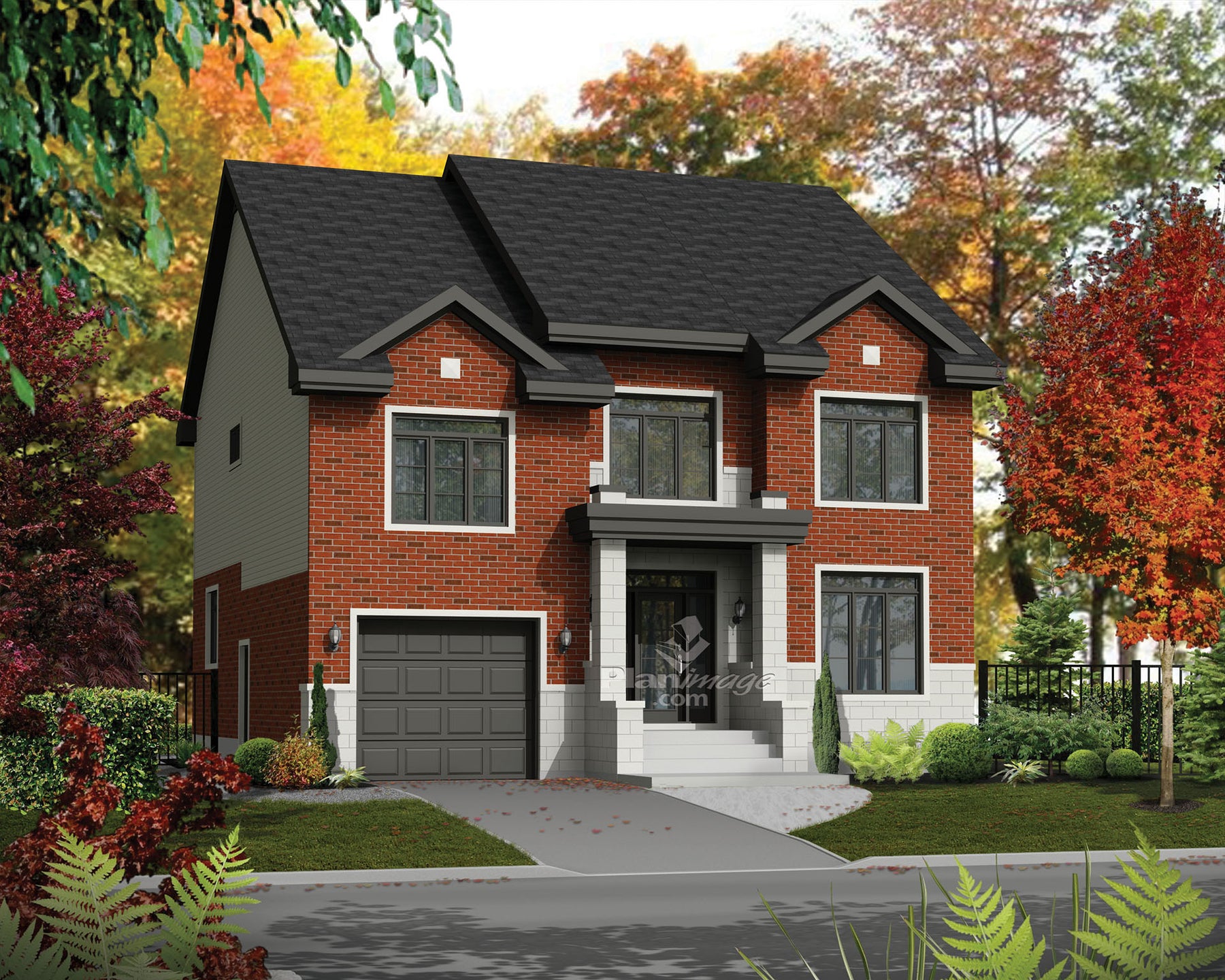 Avec son revêtement de briques et de pierres, cette maison à étage se veut à la fois moderne et invitante. Elle mesure 36 pieds de largeur sur 40 pieds de profondeur, offre une surface habitable de 2 565 pieds carrés et possède un garage simple de 225 pieds carrés.