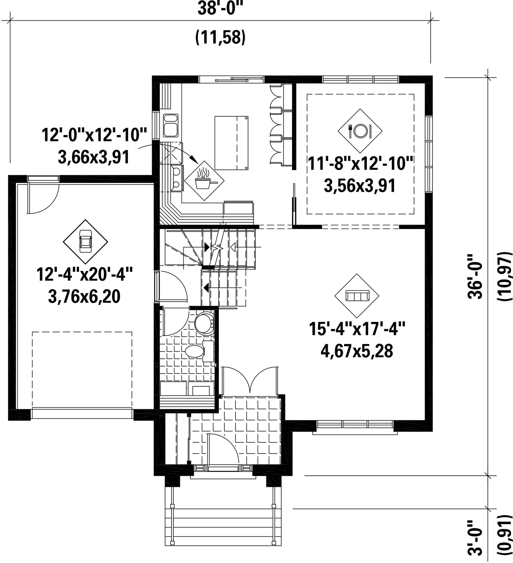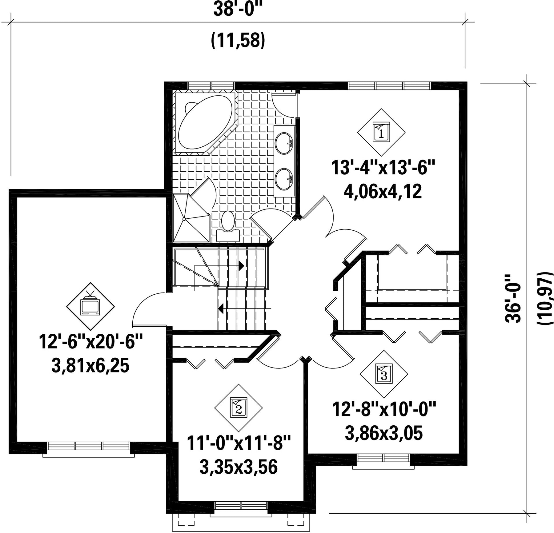 Les moulures décoratives et le revêtement de briques et de pierres donnent à cette maison à étage une allure fort distinguée. Ce modèle mesure 38 pieds de largeur sur 36 pieds de profondeur et offre une surface habitable de 1 986 pieds carrés.