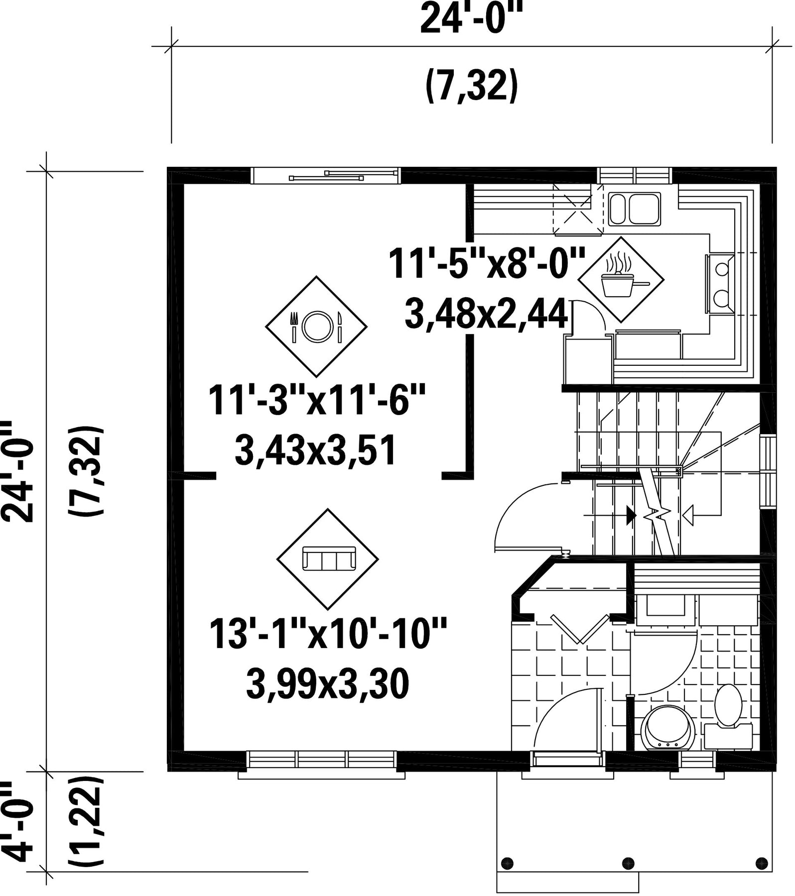 | Façade | 24 pi | Surface habitable totale | 1152 pi² |